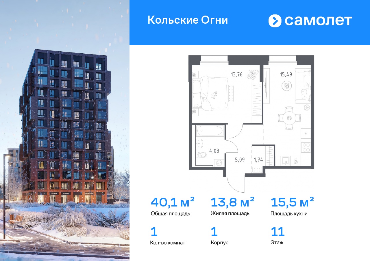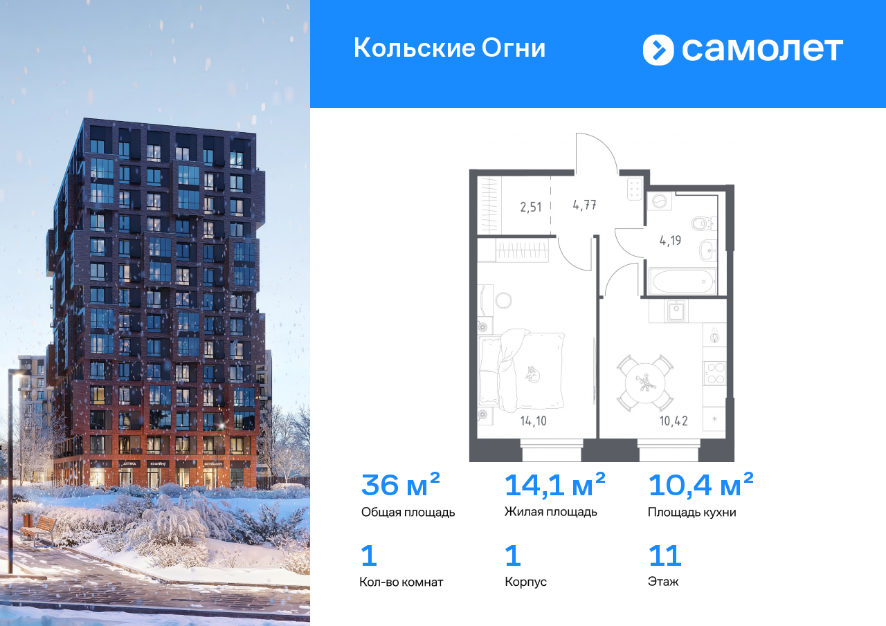 Однокомнатные квартиры в ЖК Кольские Огни