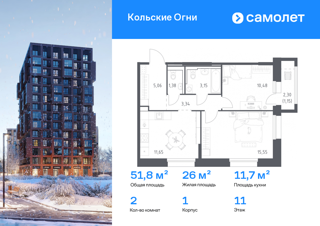 Двухкомнатные квартиры в ЖК Кольские Огни