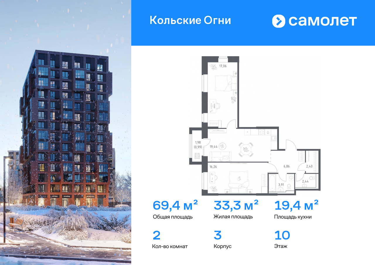 Двухкомнатные квартиры в ЖК Кольские Огни