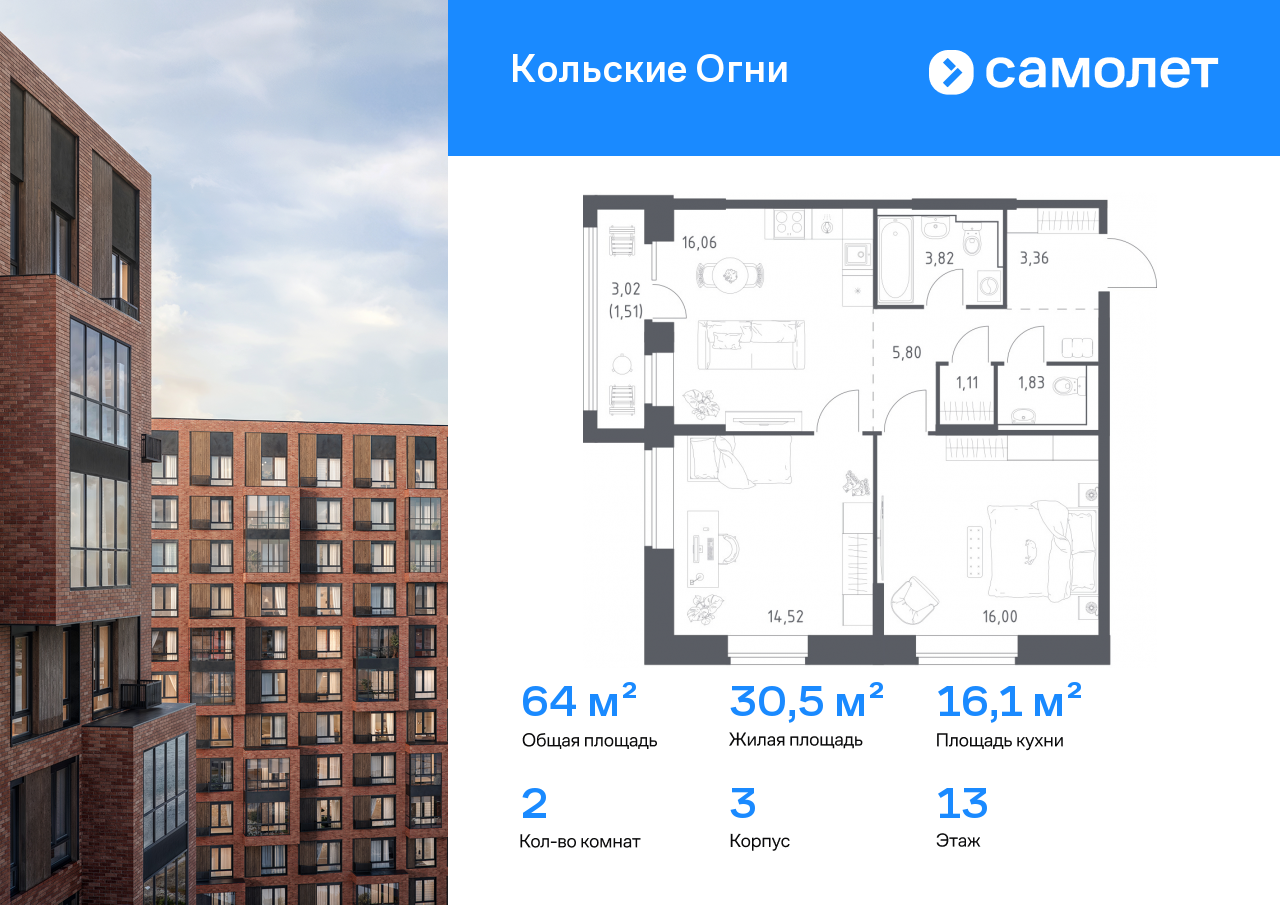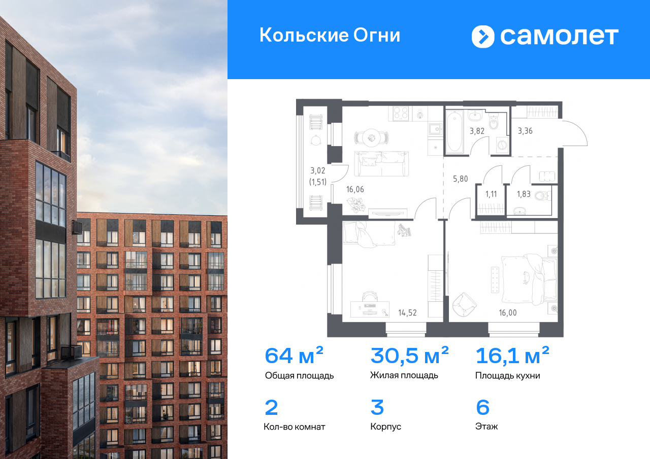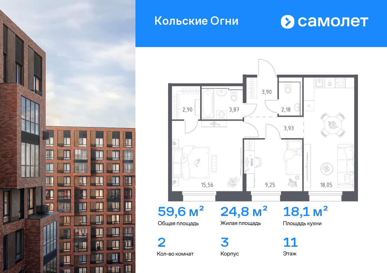 Евро двухкомнатные квартиры в ЖК Кольские Огни
