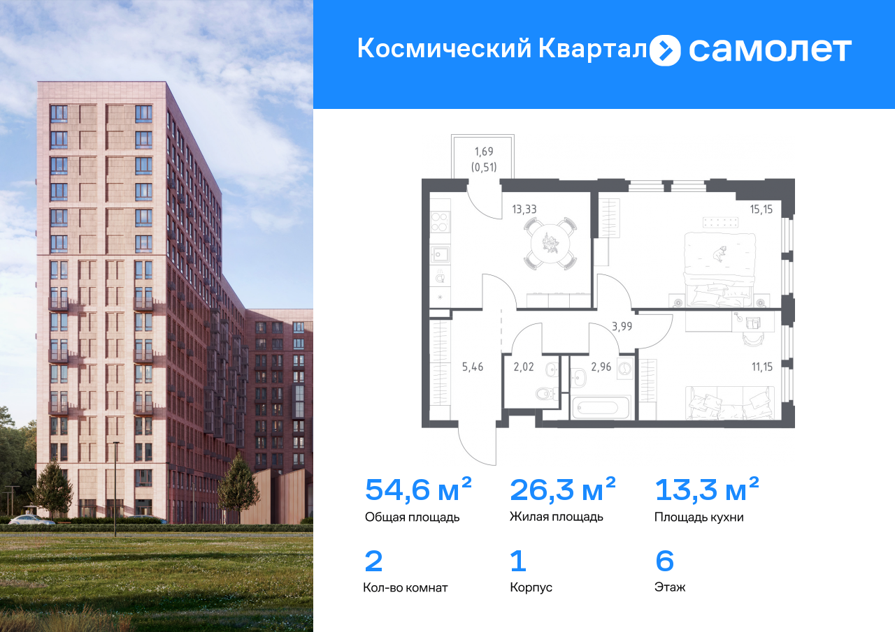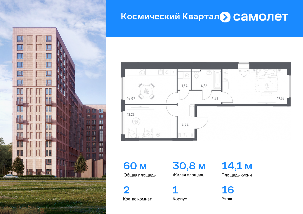 Двухкомнатные квартиры в ЖК Космический Квартал