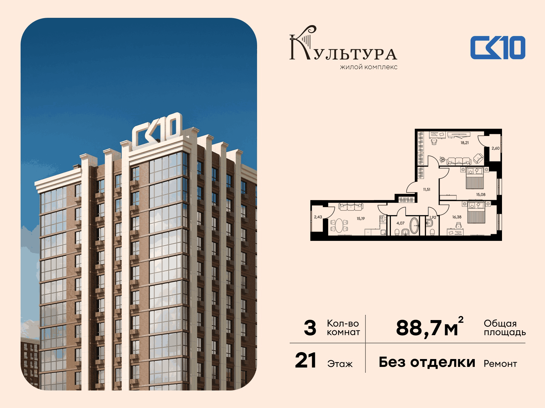 3-комнатная (88.69м2)