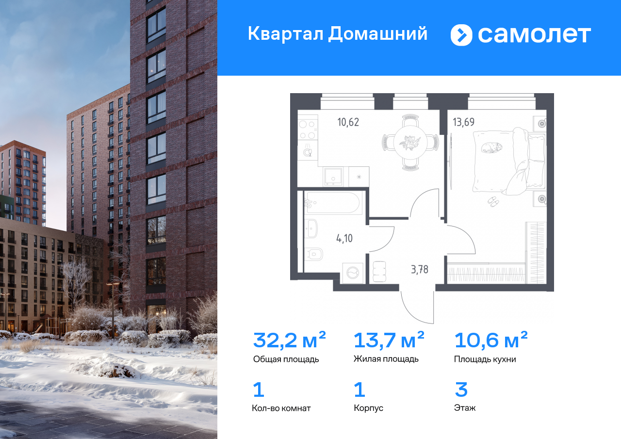 Однокомнатные квартиры в ЖК «Квартал Домашний»