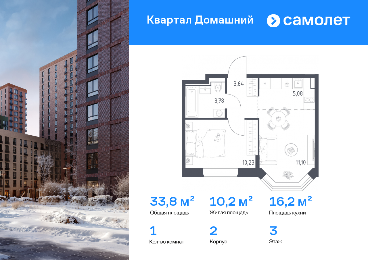 Однокомнатные квартиры в ЖК «Квартал Домашний»