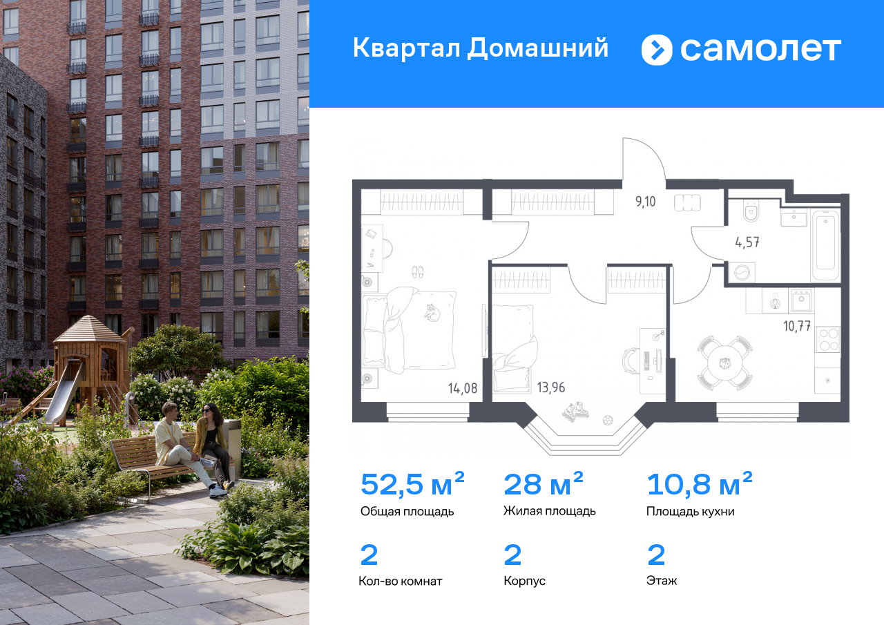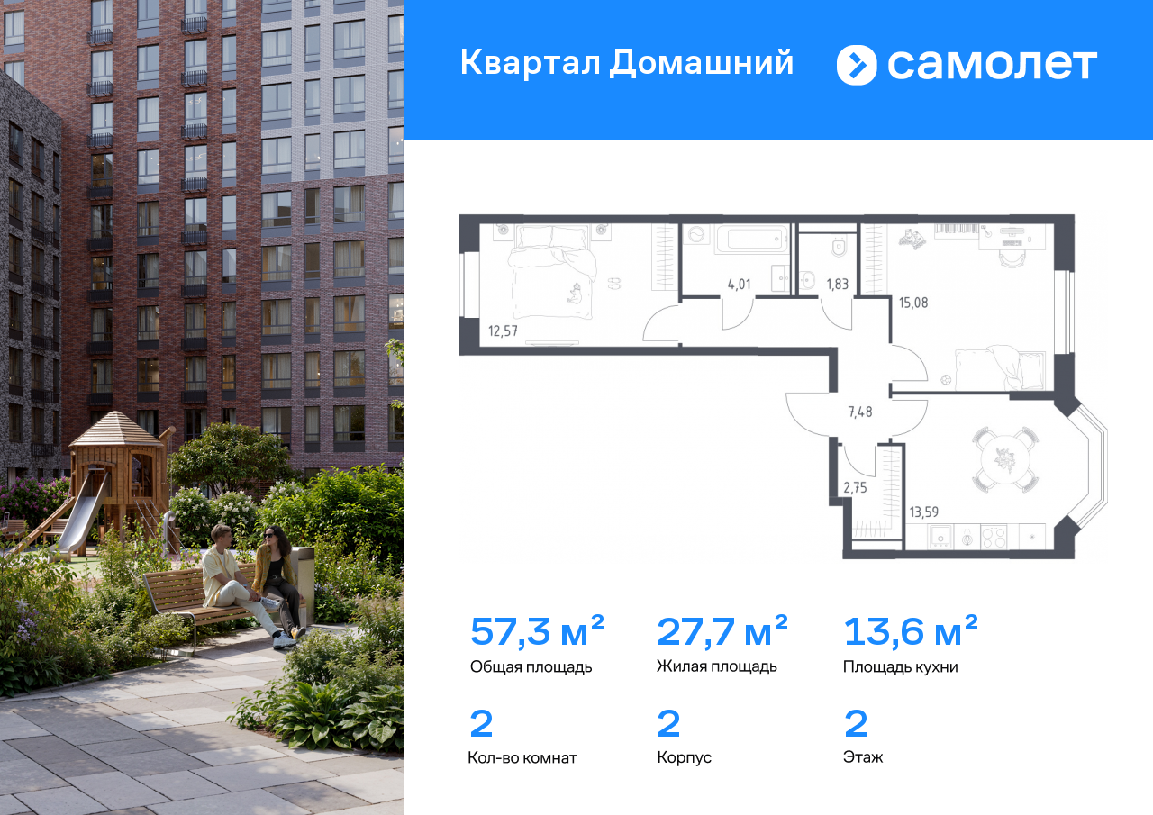Двухкомнатные квартиры в ЖК «Квартал Домашний»