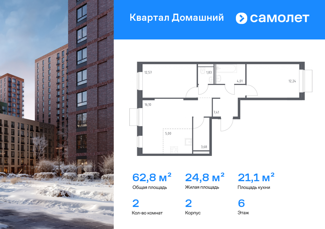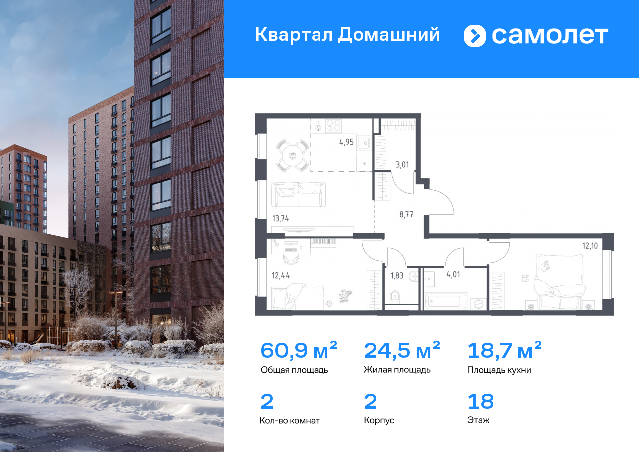 Евро двухкомнатные квартиры в ЖК «Квартал Домашний»