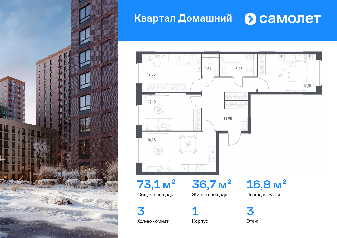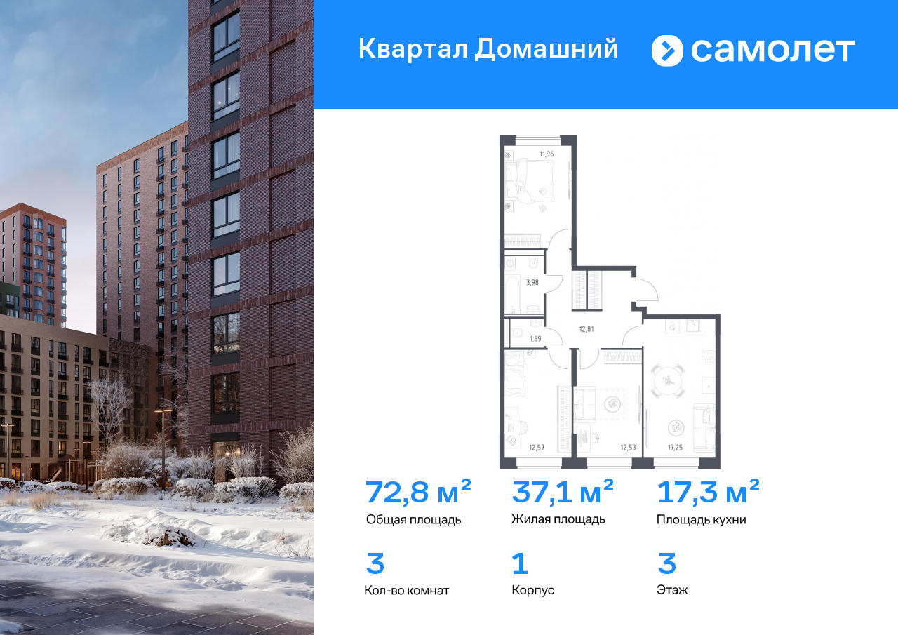 Евро трехкомнатные квартиры в ЖК «Квартал Домашний»