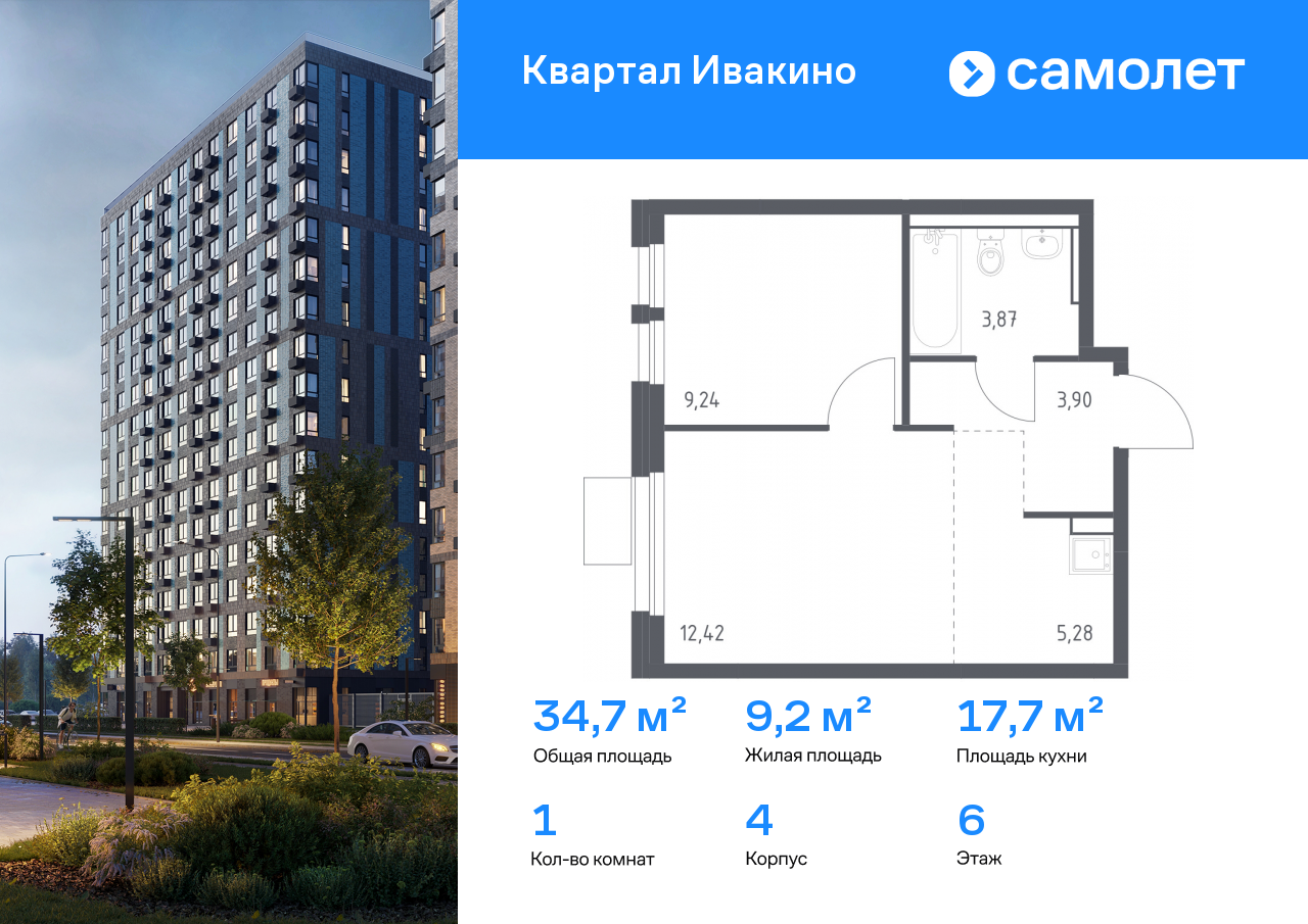 Евро однокомнатные квартиры в ЖК «Квартал Ивакино»