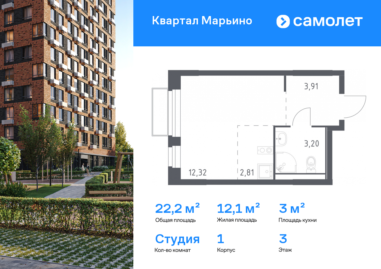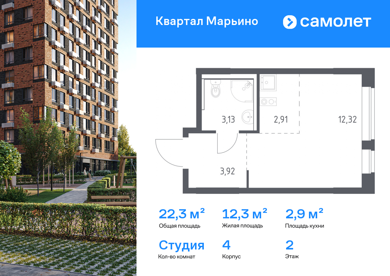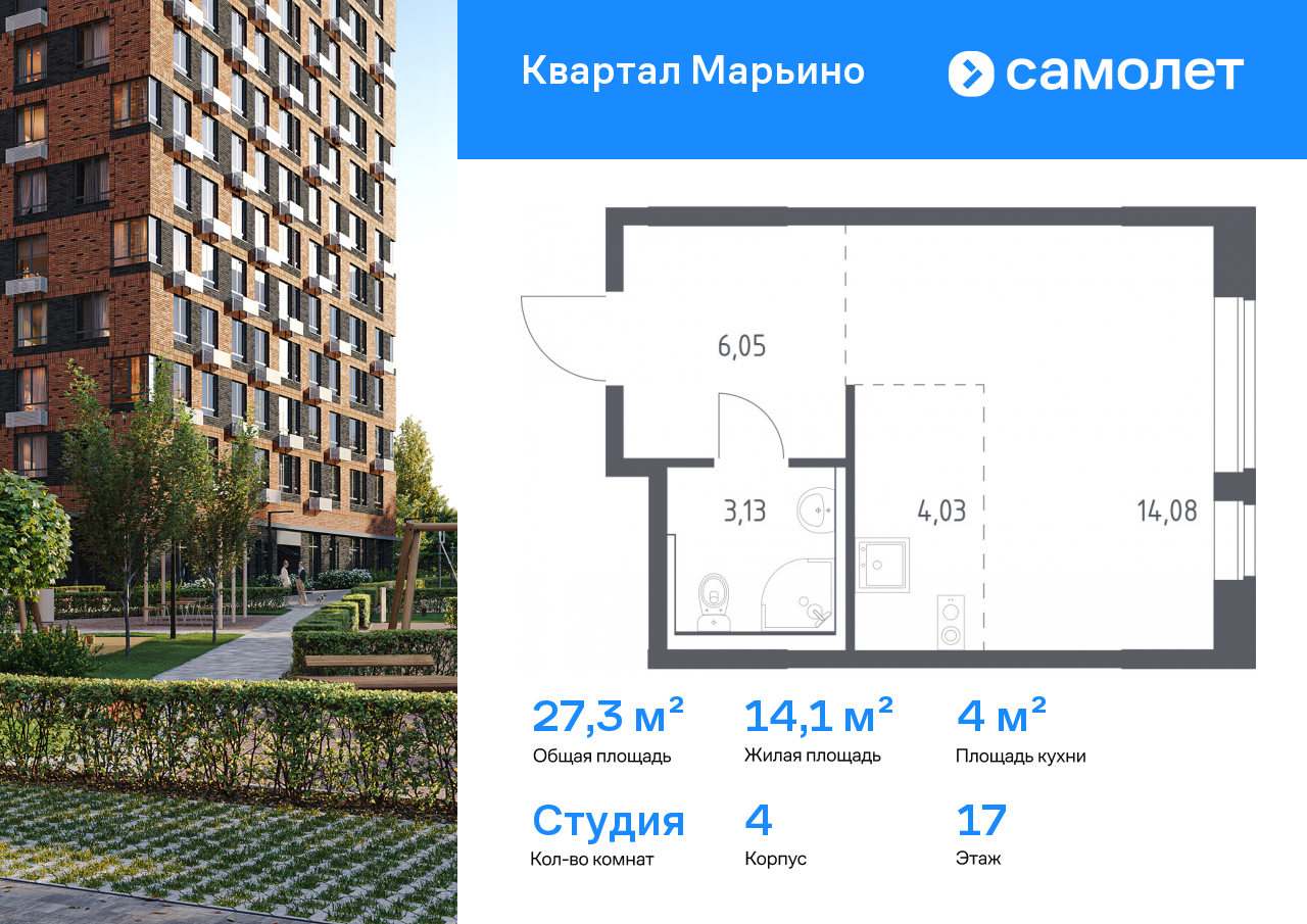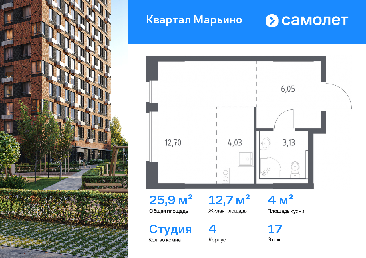 Квартиры-студии в ЖК «Квартал Марьино»