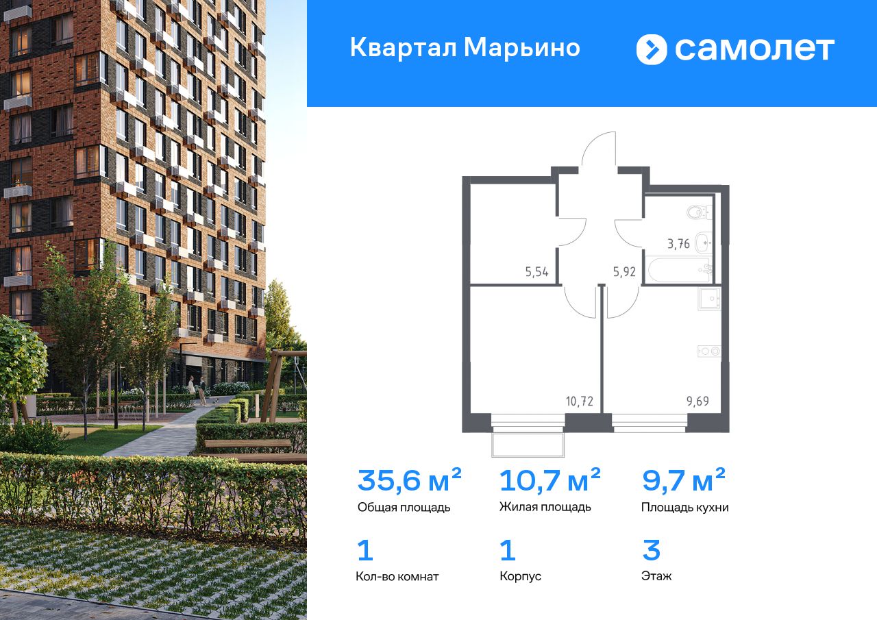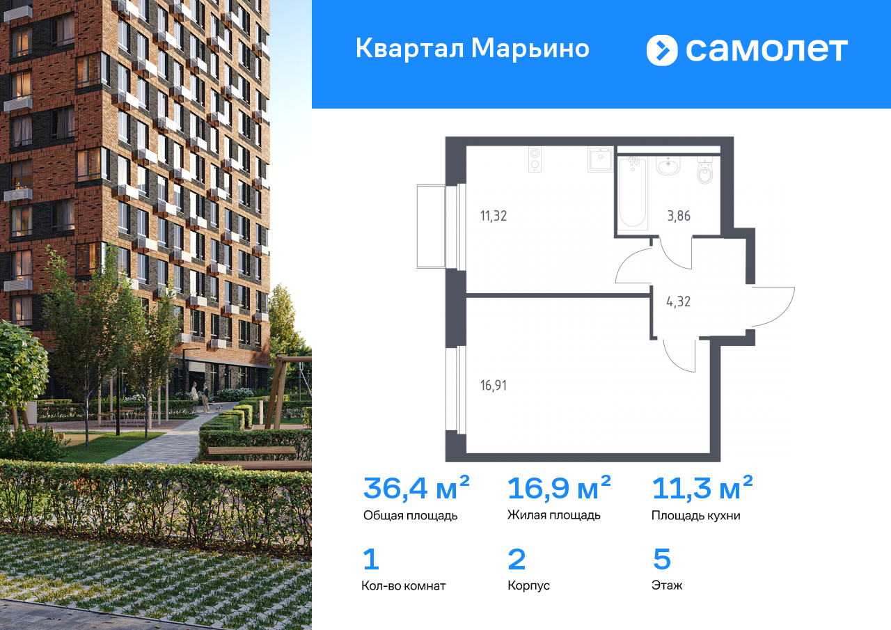 Однокомнатные квартиры в ЖК «Квартал Марьино»