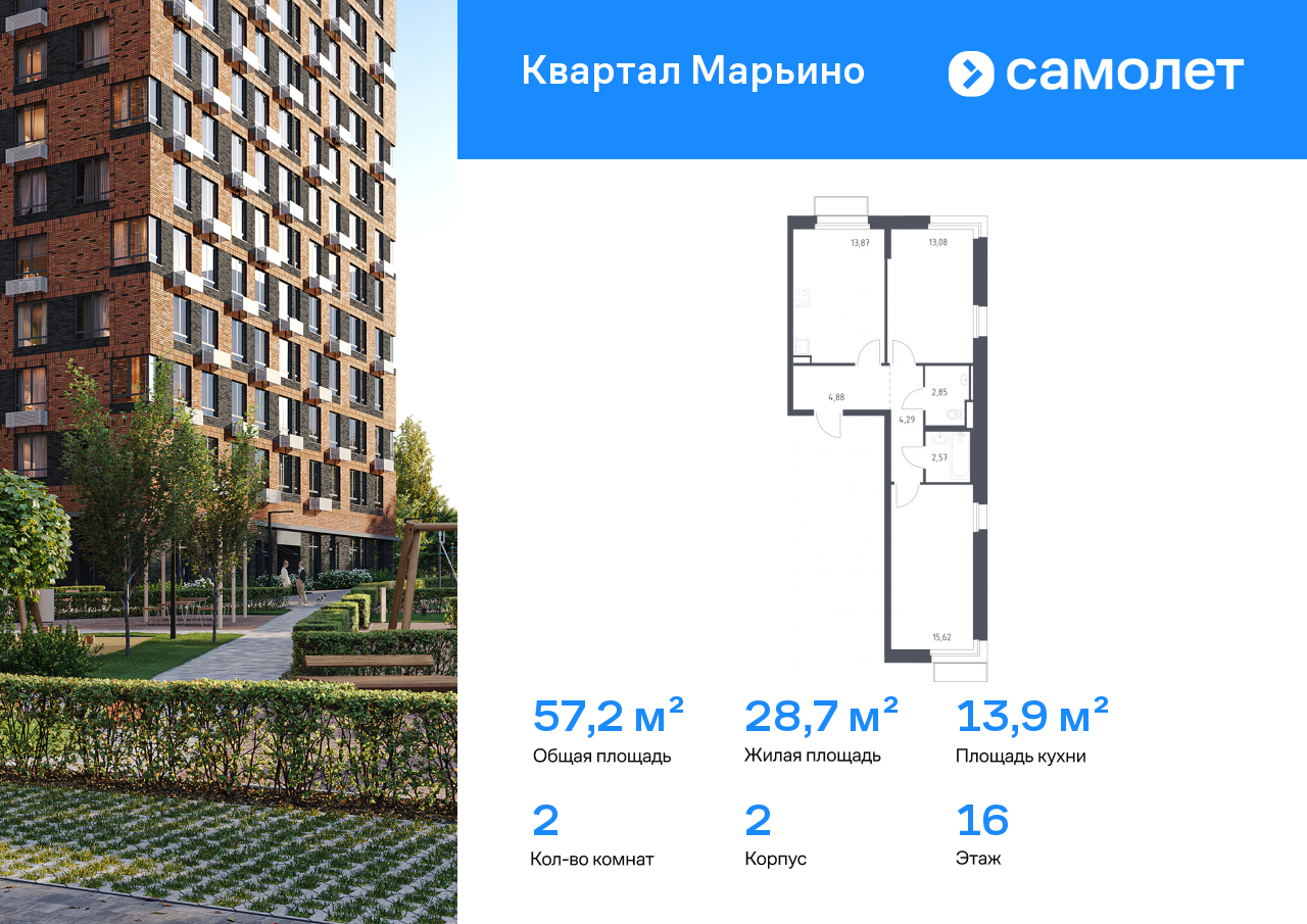 Двухкомнатные квартиры в ЖК «Квартал Марьино»