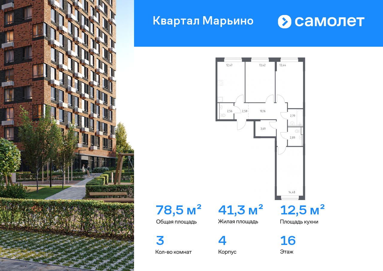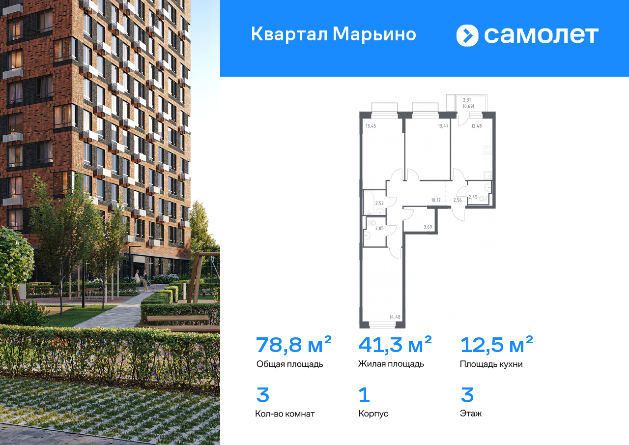 Трехкомнатные квартиры в ЖК «Квартал Марьино»
