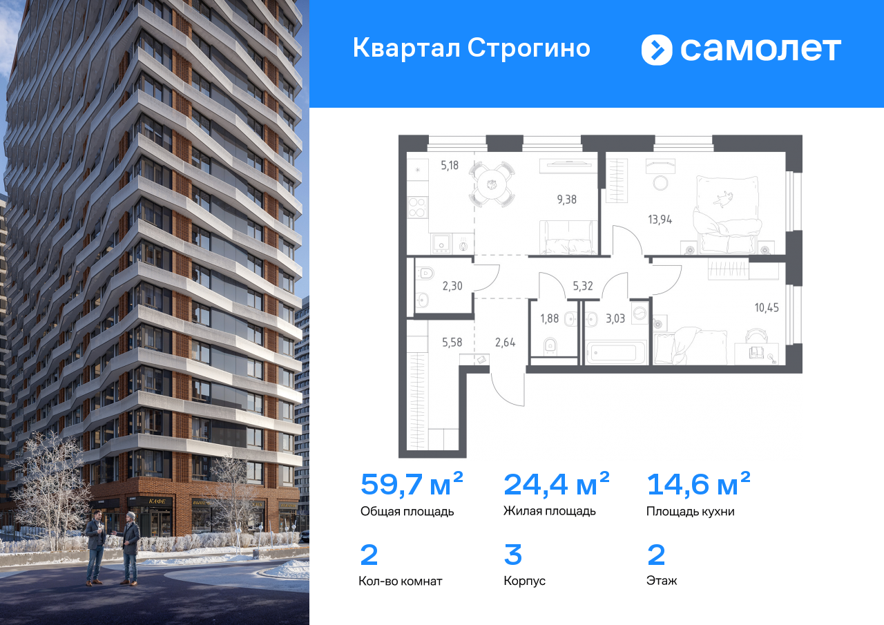 Двухкомнатные квартиры в ЖК «Квартал Строгино»