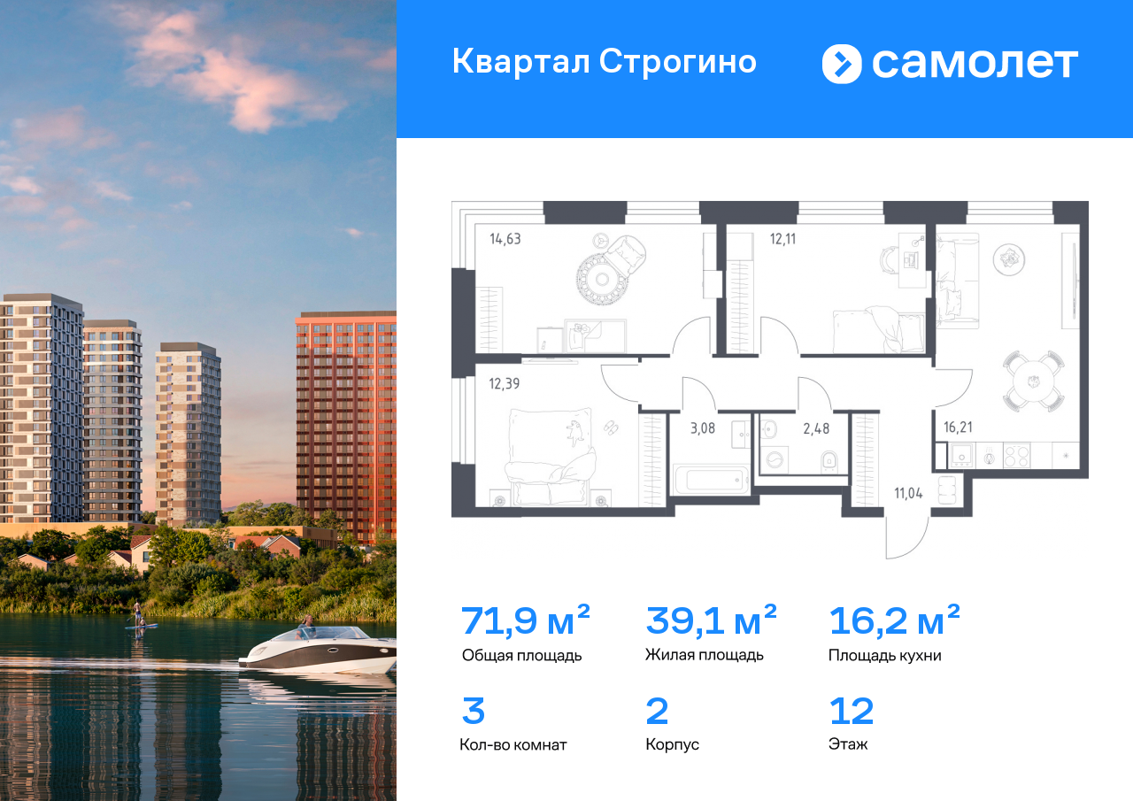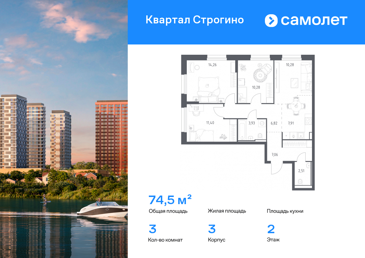 Трехкомнатные квартиры в ЖК «Квартал Строгино»