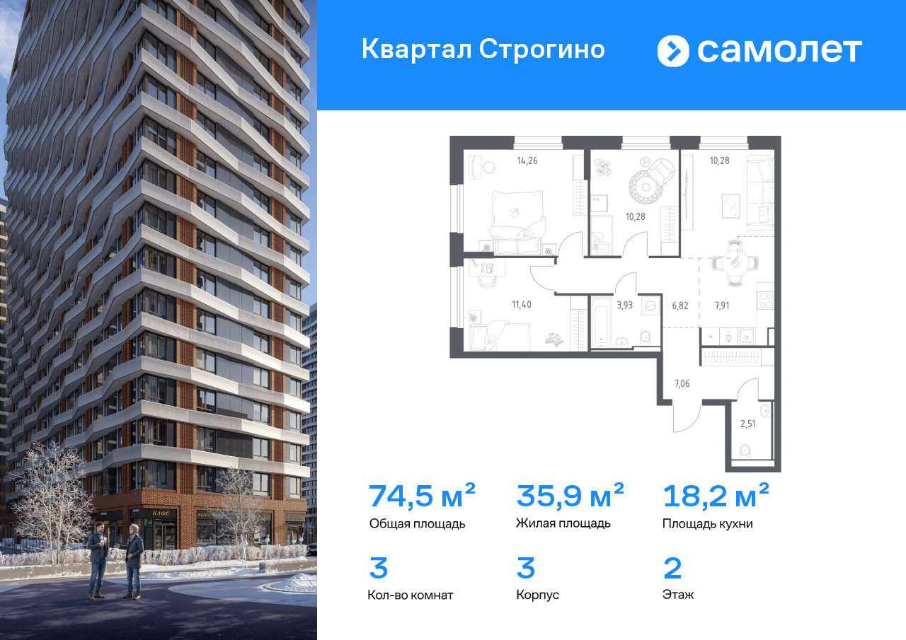 Трехкомнатные квартиры в ЖК «Квартал Строгино»