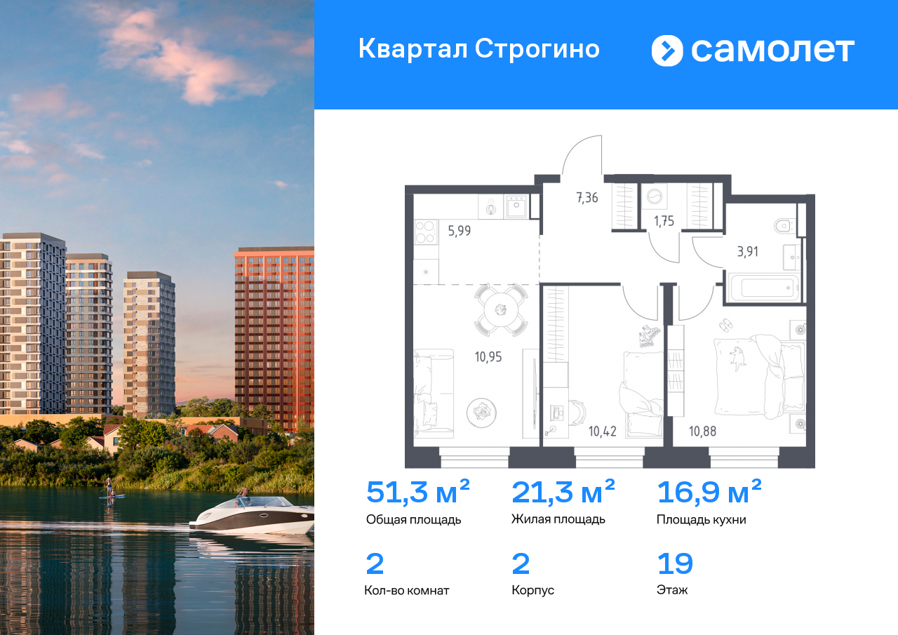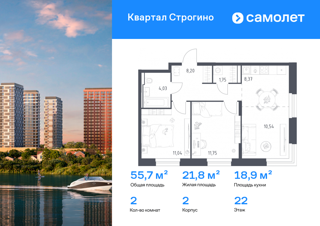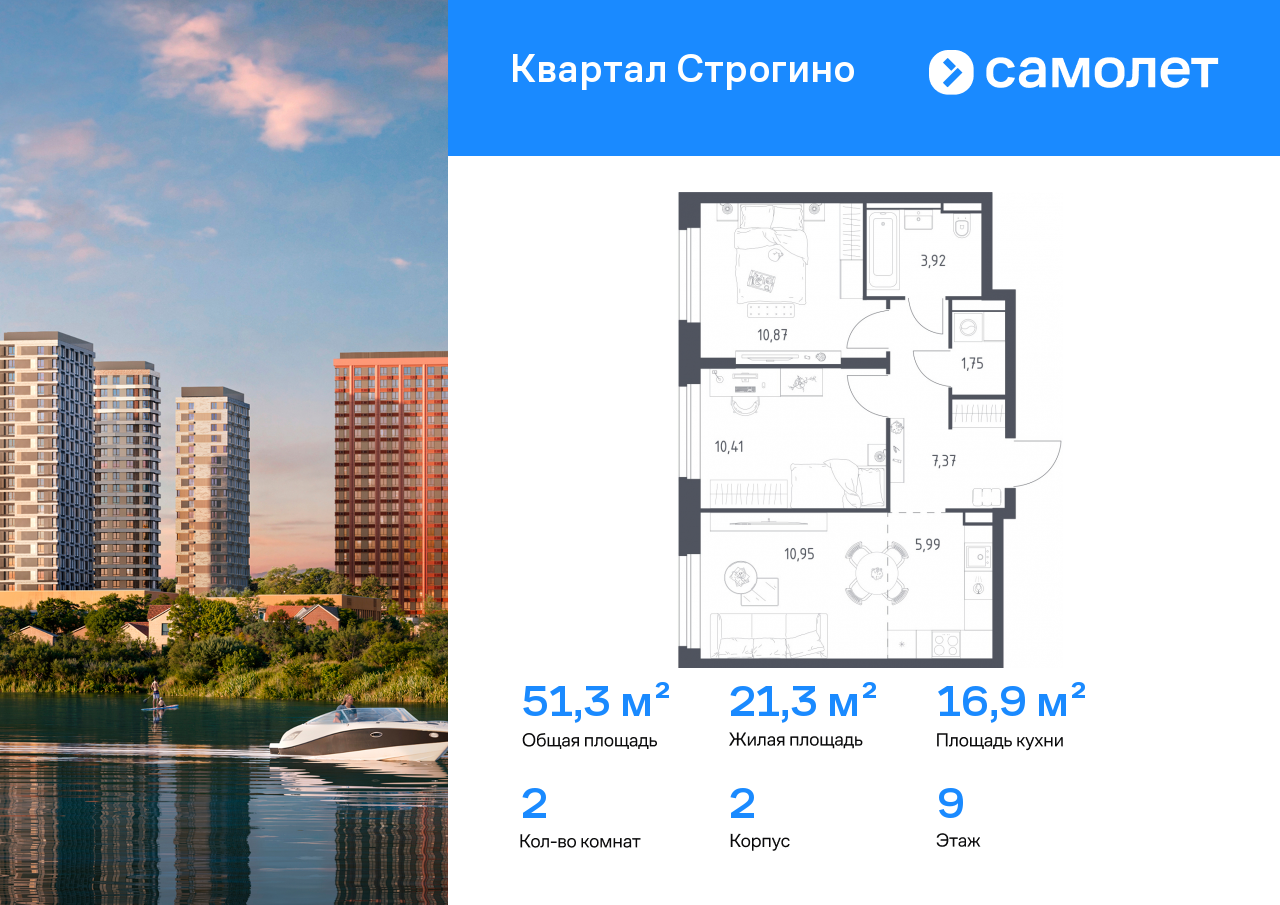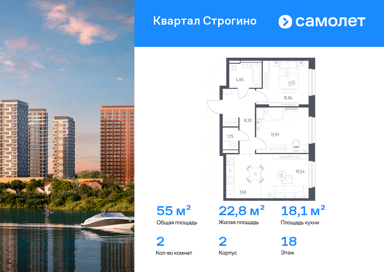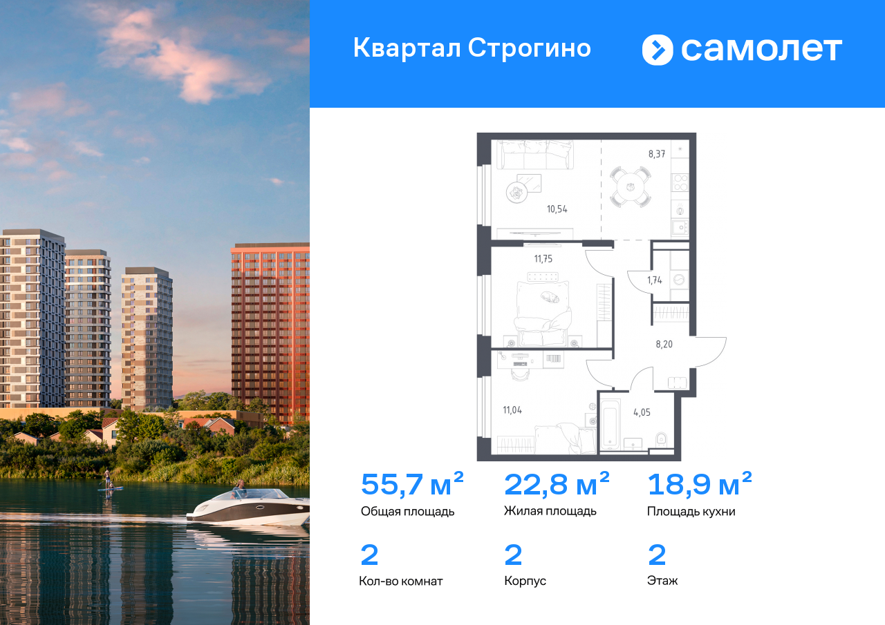 Евро двухкомнатные квартиры в ЖК «Квартал Строгино»