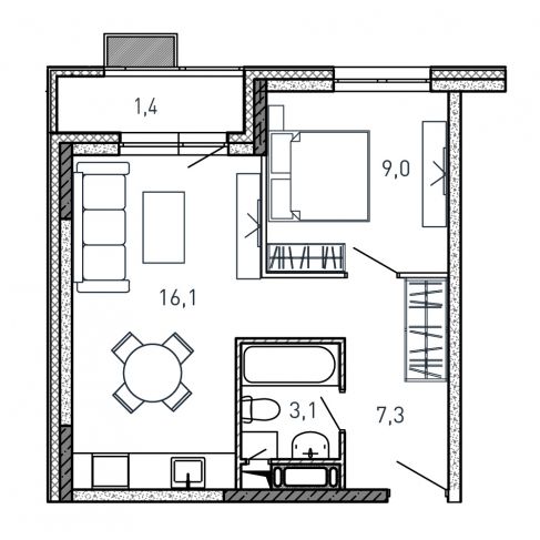 1-комнатная (34.4м2)