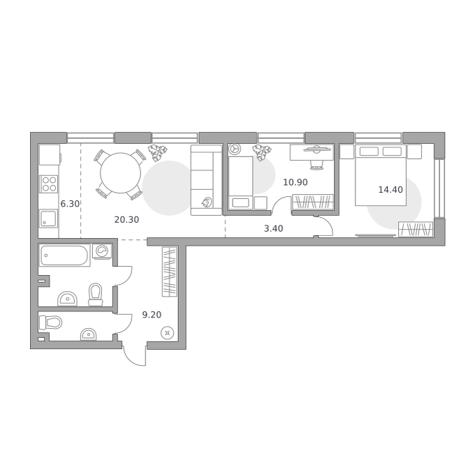 3-комнатная (66.9м2)
