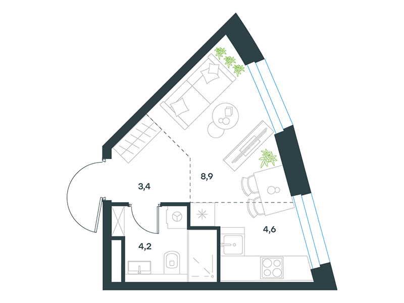 Предусмотрено более 40 видов продуманных планировок — от студий (20 кв. м.) до пятикомнатных евроформата (131 кв. м.). Кроме того, в комплексе будут представлены такие редкие форматы, как квартиры с окном в ванной и с высокими потолками до 4,22 м. Покупателям предлагаются три варианта отделки: черновая, white box с основой для собственного интерьера или готовый дизайнерский ремонт в одном из двух стилей.