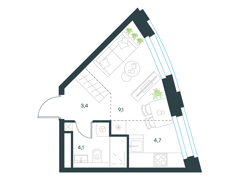 Предусмотрено более 40 видов продуманных планировок — от студий (20 кв. м.) до пятикомнатных евроформата (131 кв. м.). Кроме того, в комплексе будут представлены такие редкие форматы, как квартиры с окном в ванной и с высокими потолками до 4,22 м. Покупателям предлагаются три варианта отделки: черновая, white box с основой для собственного интерьера или готовый дизайнерский ремонт в одном из двух стилей.