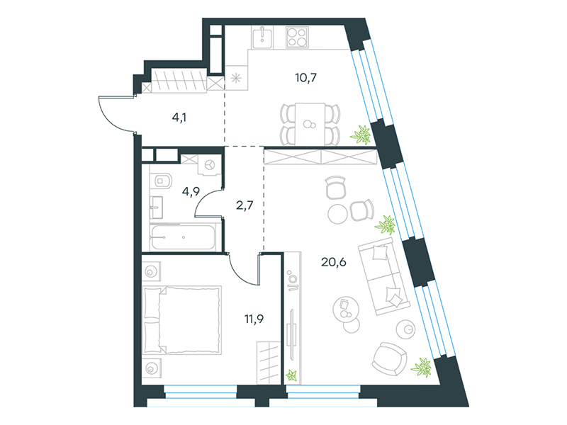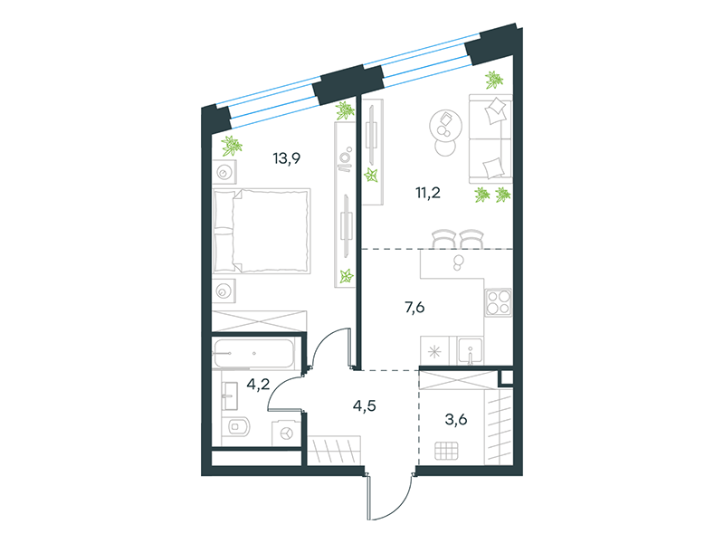Предусмотрено более 40 видов продуманных планировок — от студий (20 кв. м.) до пятикомнатных евроформата (131 кв. м.). Кроме того, в комплексе будут представлены такие редкие форматы, как квартиры с окном в ванной и с высокими потолками до 4,22 м. Покупателям предлагаются три варианта отделки: черновая, white box с основой для собственного интерьера или готовый дизайнерский ремонт в одном из двух стилей.