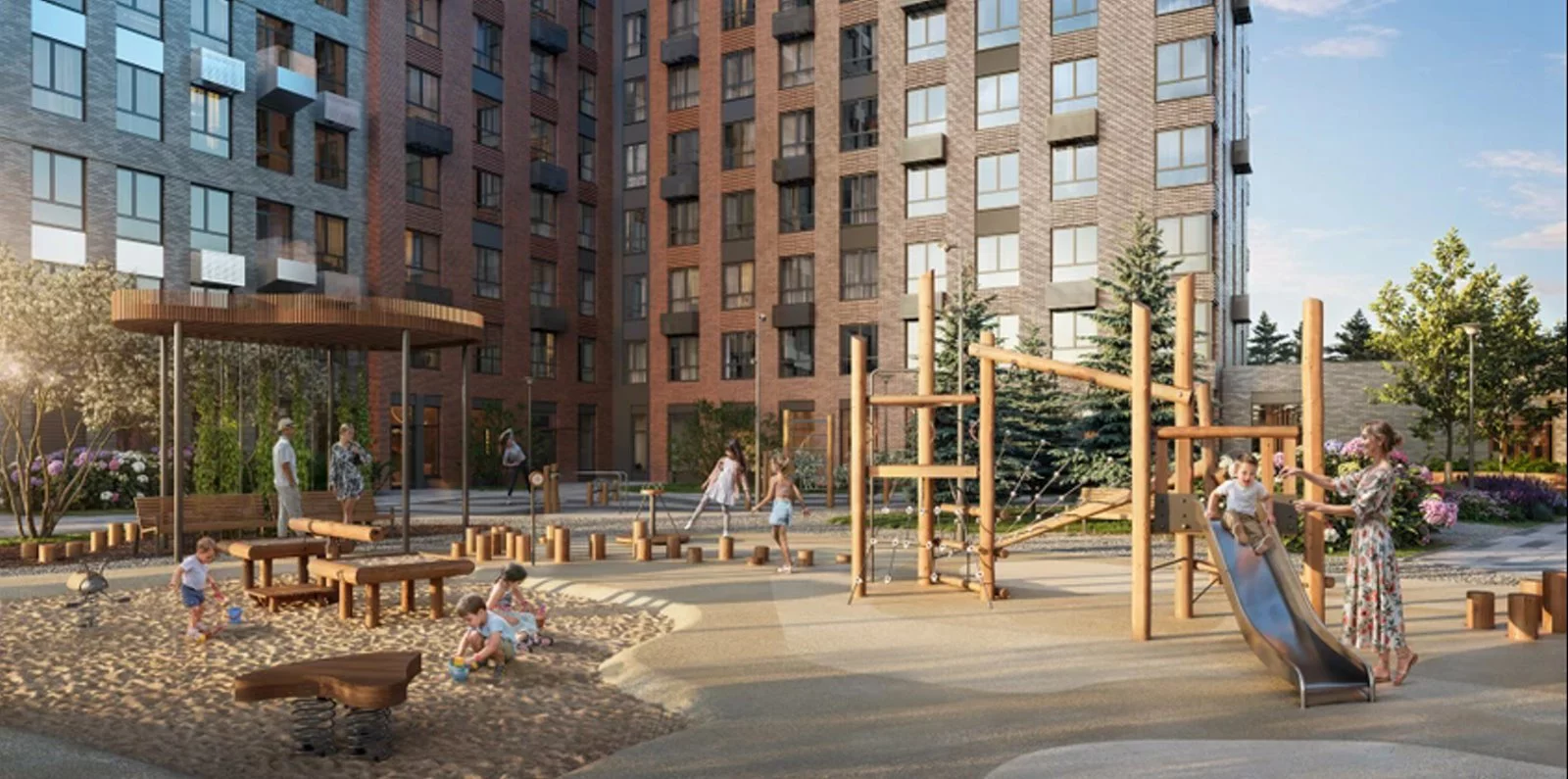 Опции, которые предлагает застройщик для проекта ЖК Литературный Квартал: многоуровневая и подземная парковки, закрытый двор без машин, детские и спортивные площадки, видеонаблюдение.