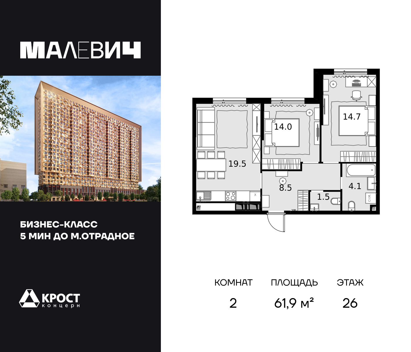 - Цена за м2 417 000 руб