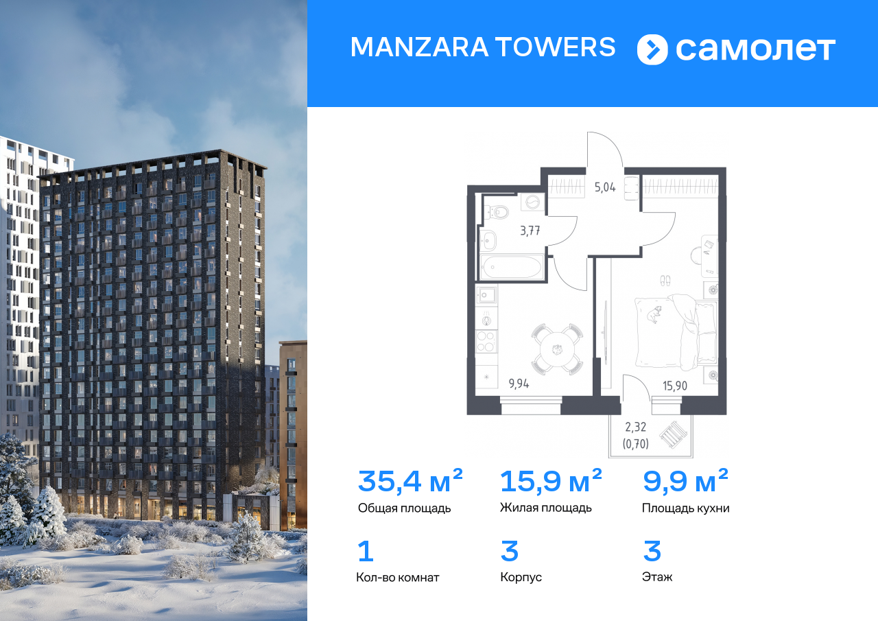 Однокомнатные квартиры в ЖК Manzara Towers (Манзара Тауэрс)