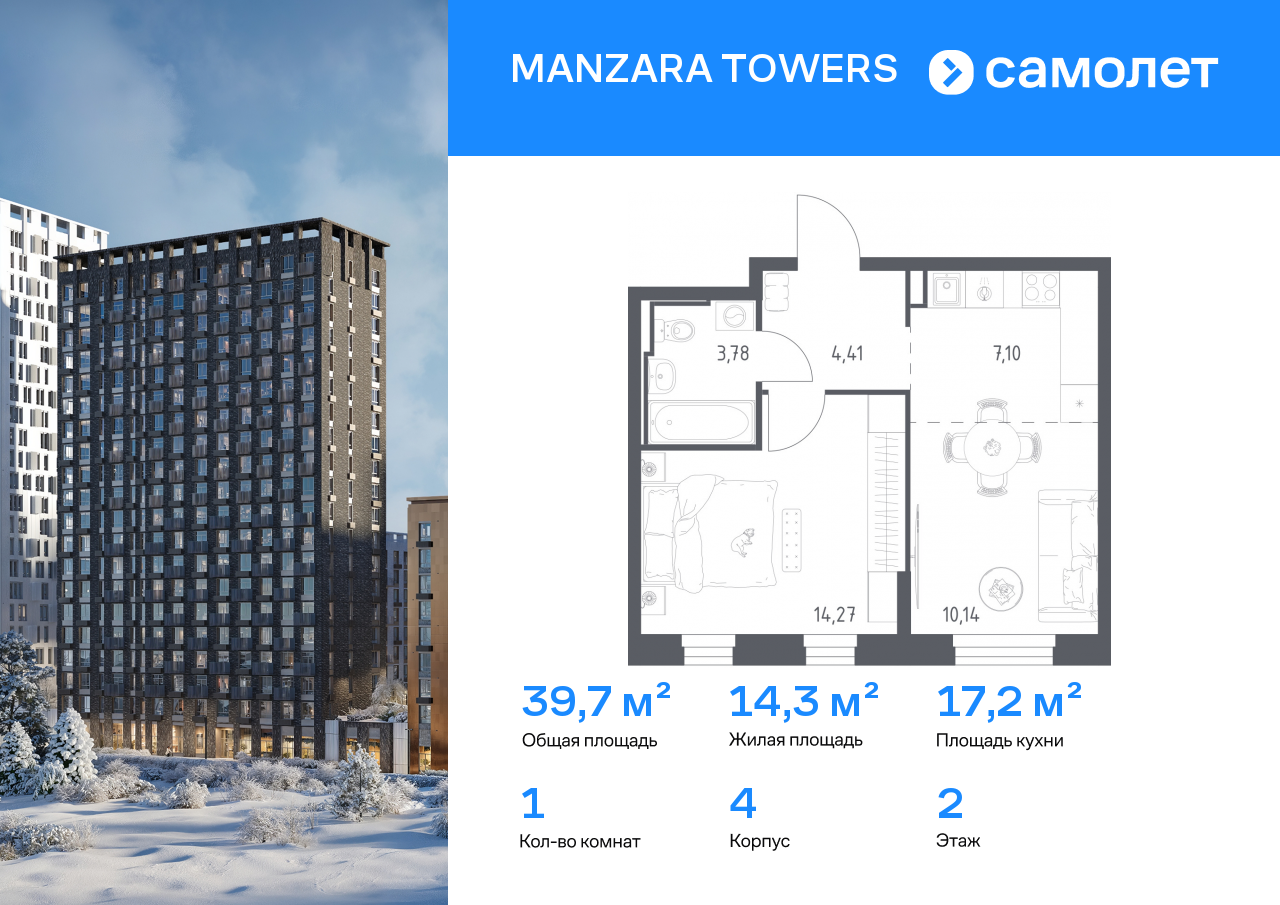 Евро однокомнатные квартиры в ЖК Manzara Towers (Манзара Тауэрс)