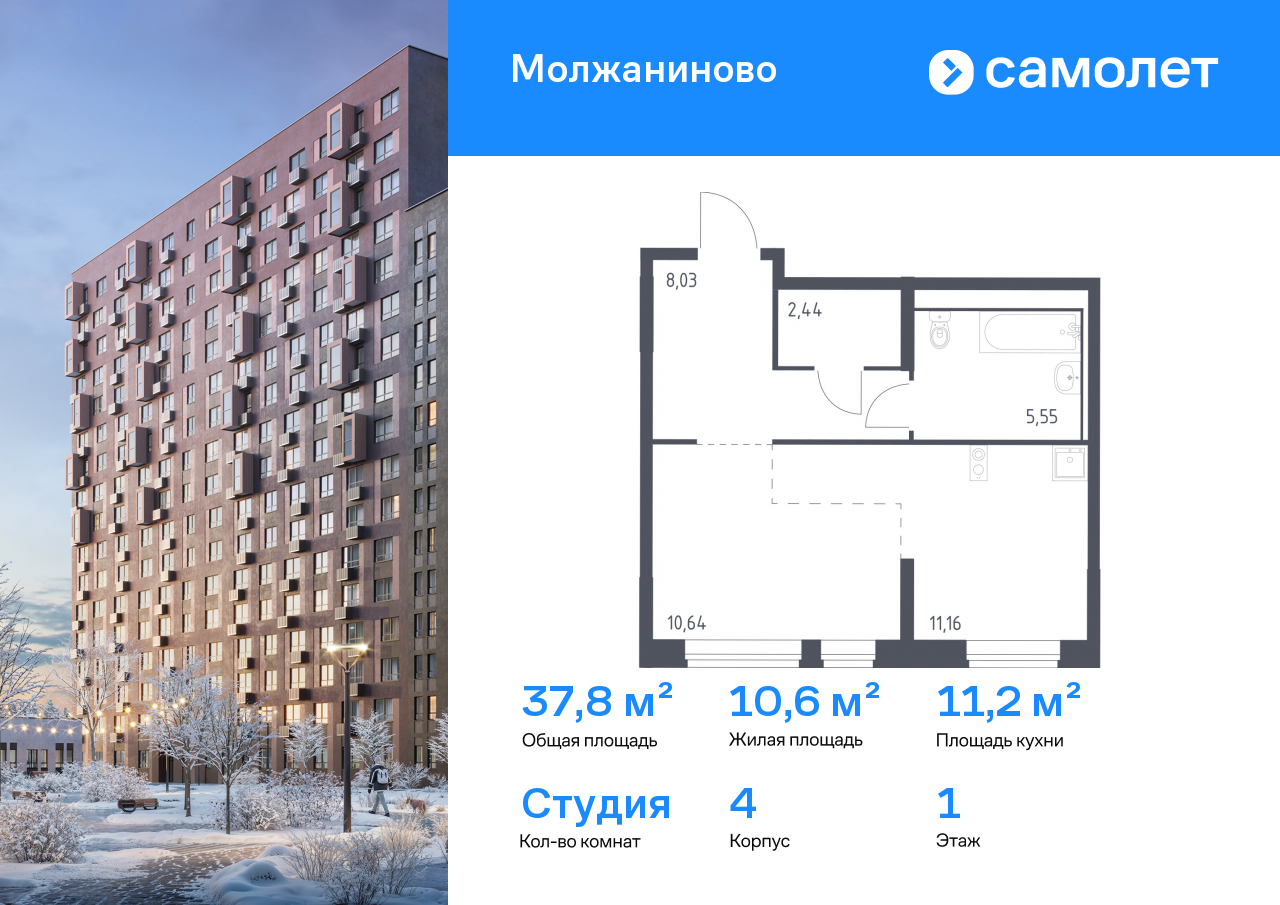 Квартиры-студии в ЖК «Молжаниново»
