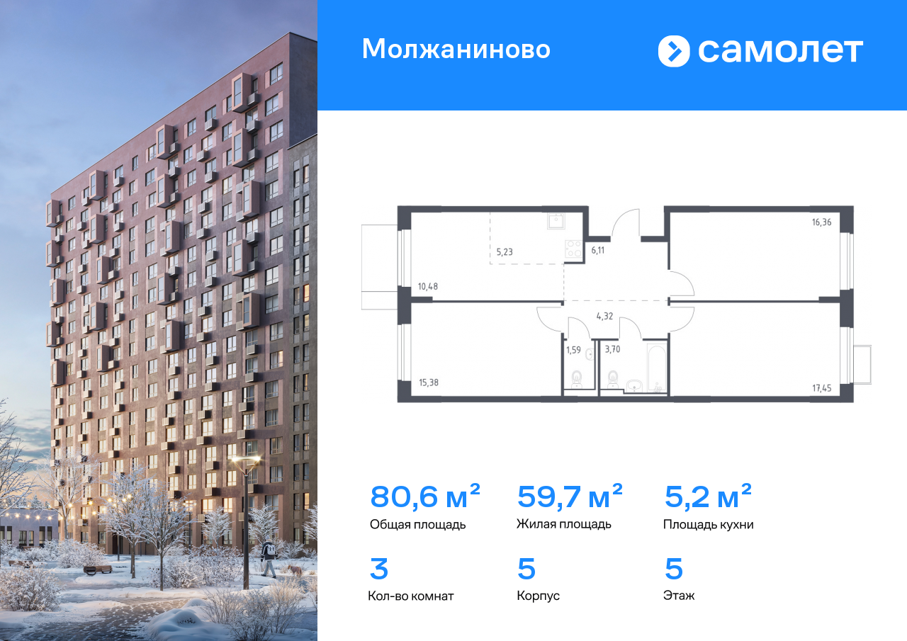 Трехкомнатные квартиры в ЖК «Молжаниново»
