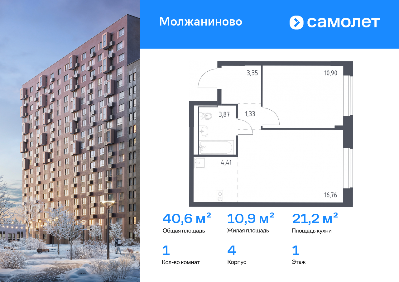 Евро однокомнатные квартиры в ЖК «Молжаниново»