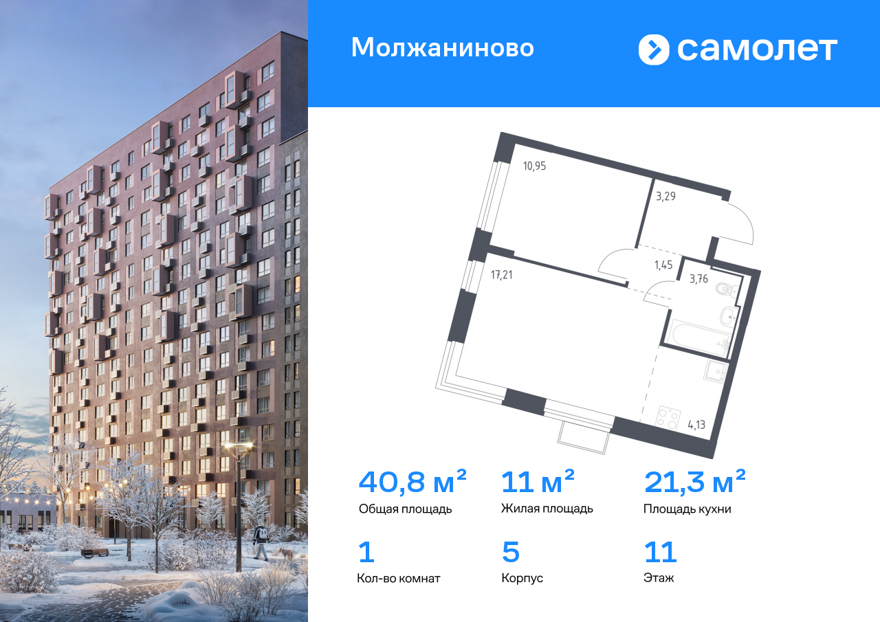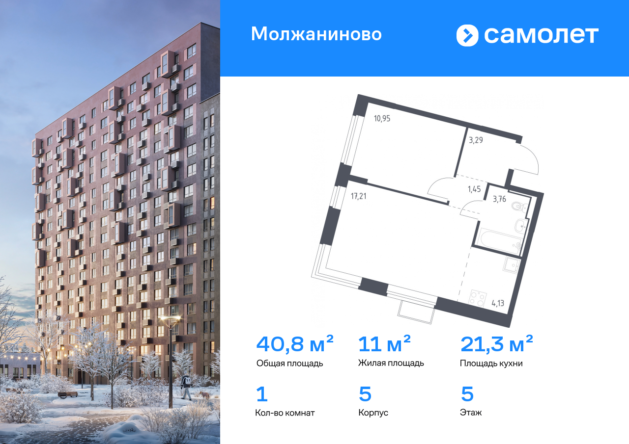 Евро однокомнатные квартиры в ЖК «Молжаниново»
