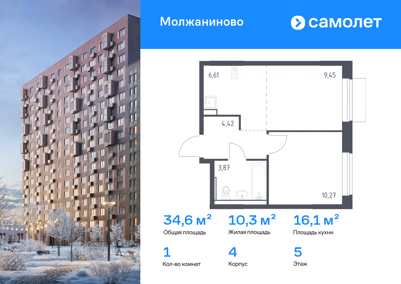 Евро однокомнатные квартиры в ЖК «Молжаниново»