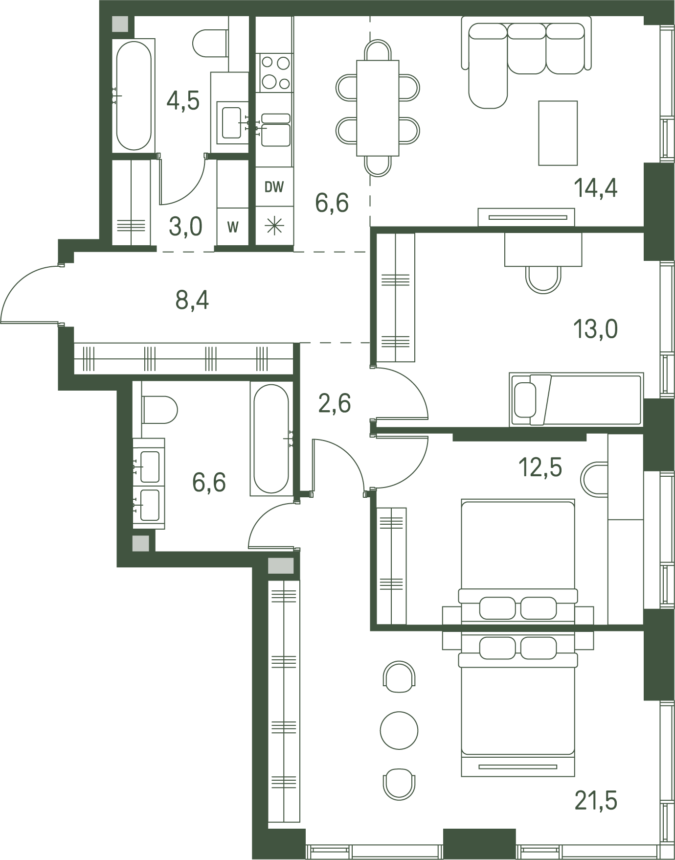 Трехкомнатные квартиры в ЖК Moments (Моментс)