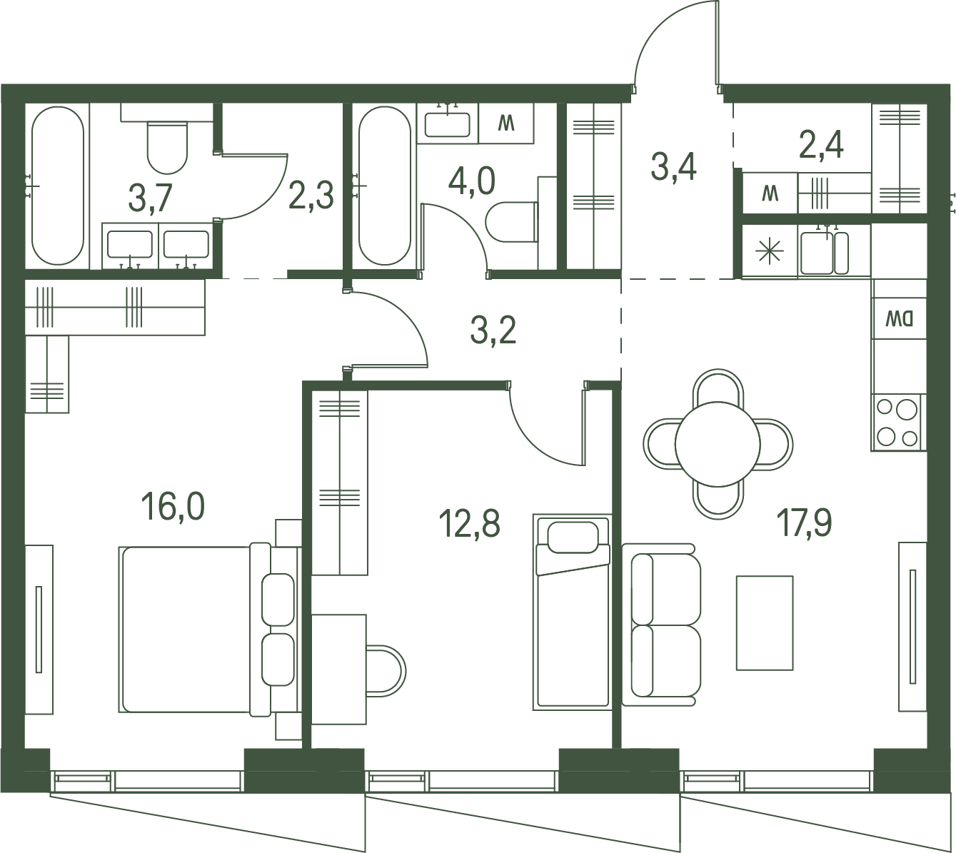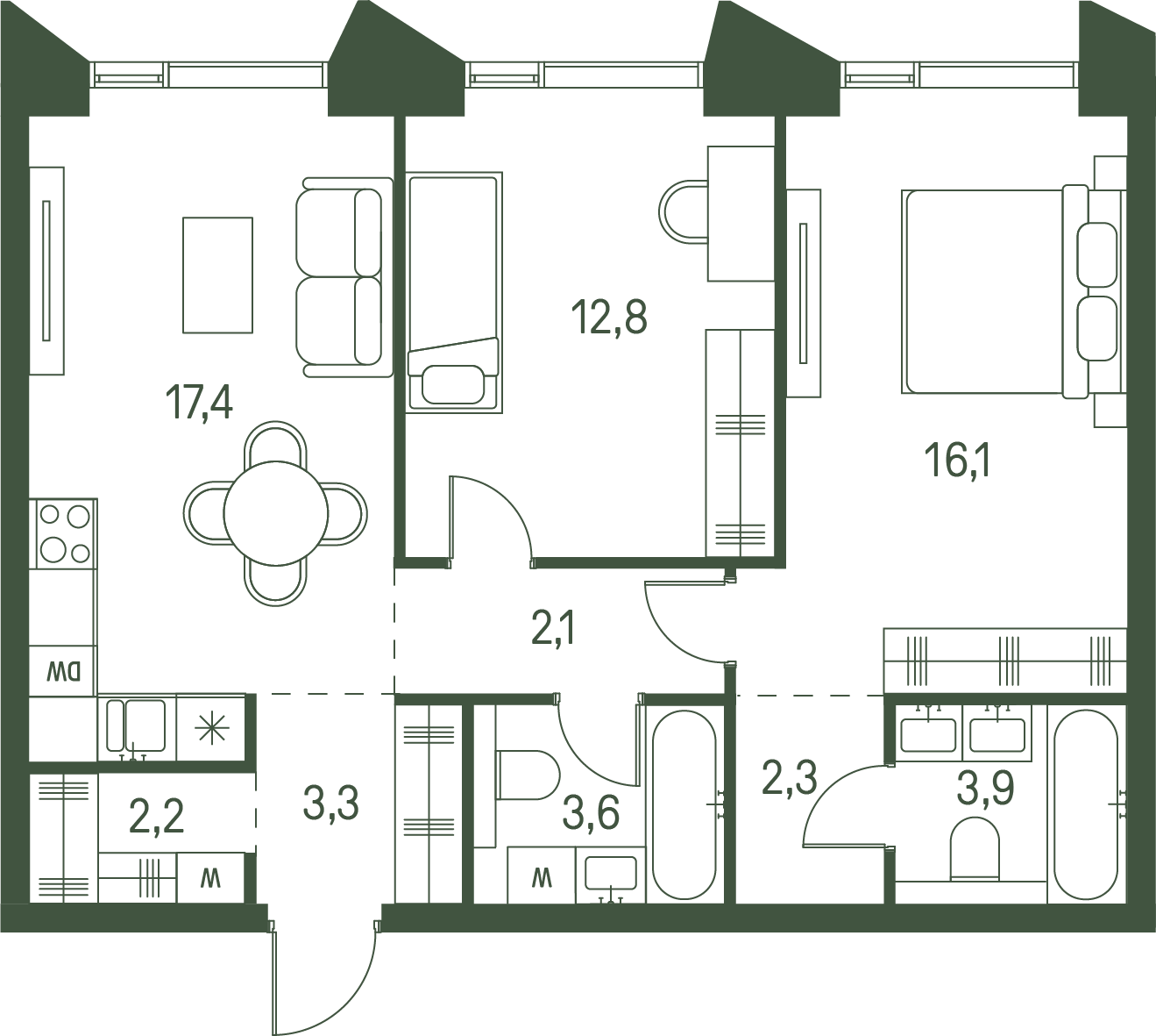 Евро двухкомнатные квартиры в ЖК Moments (Моментс)