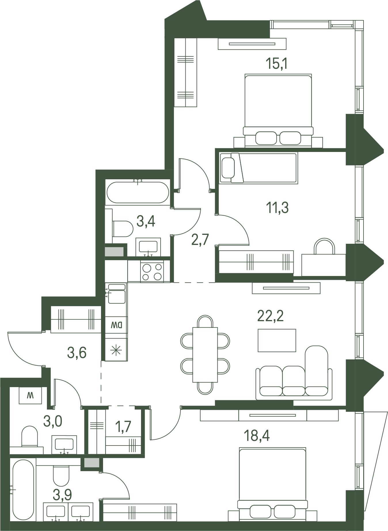 Евро трехкомнатные квартиры в ЖК Moments (Моментс)