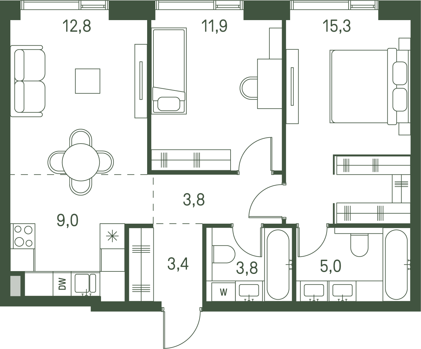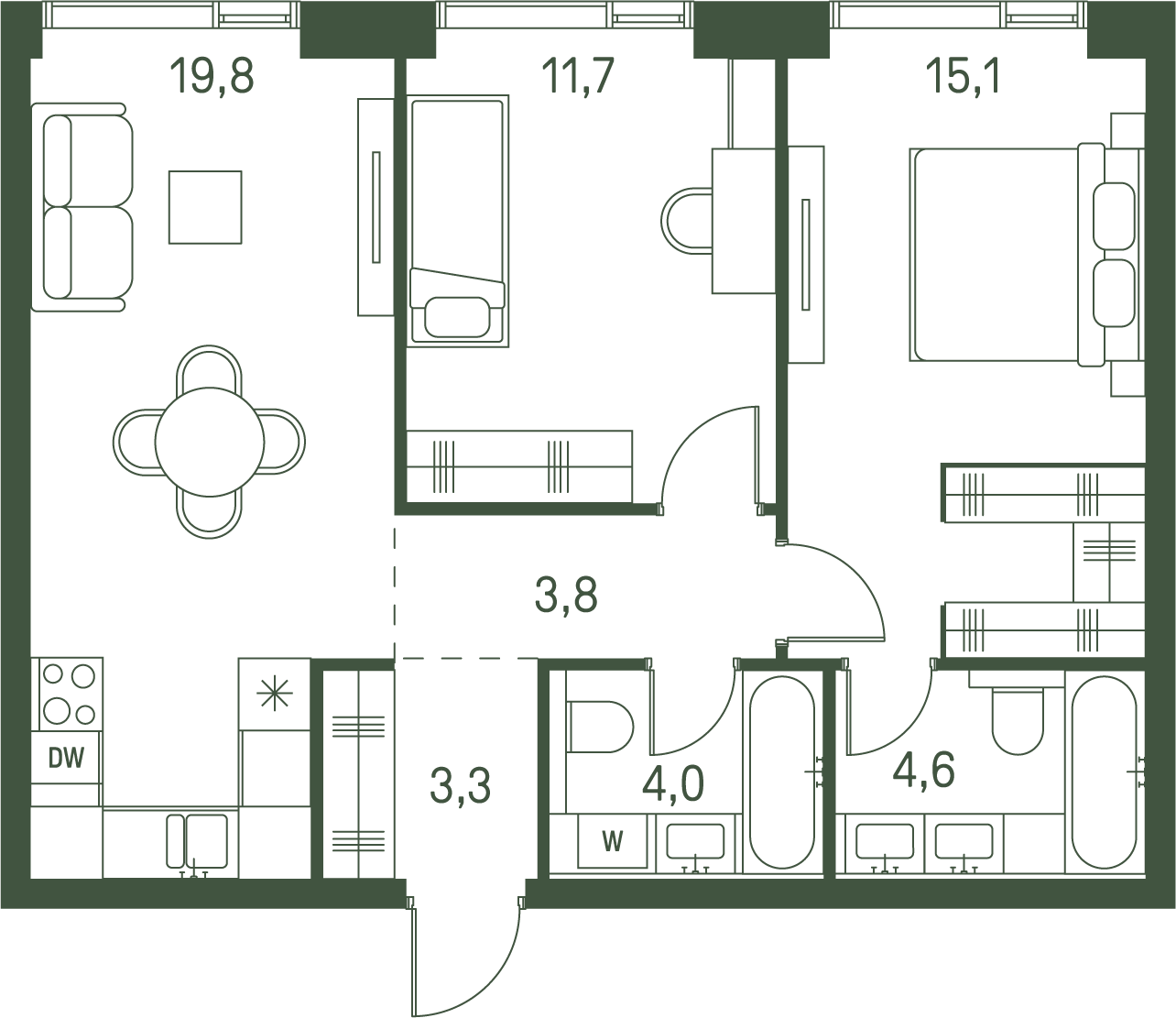 2-комнатная (59.8м2)