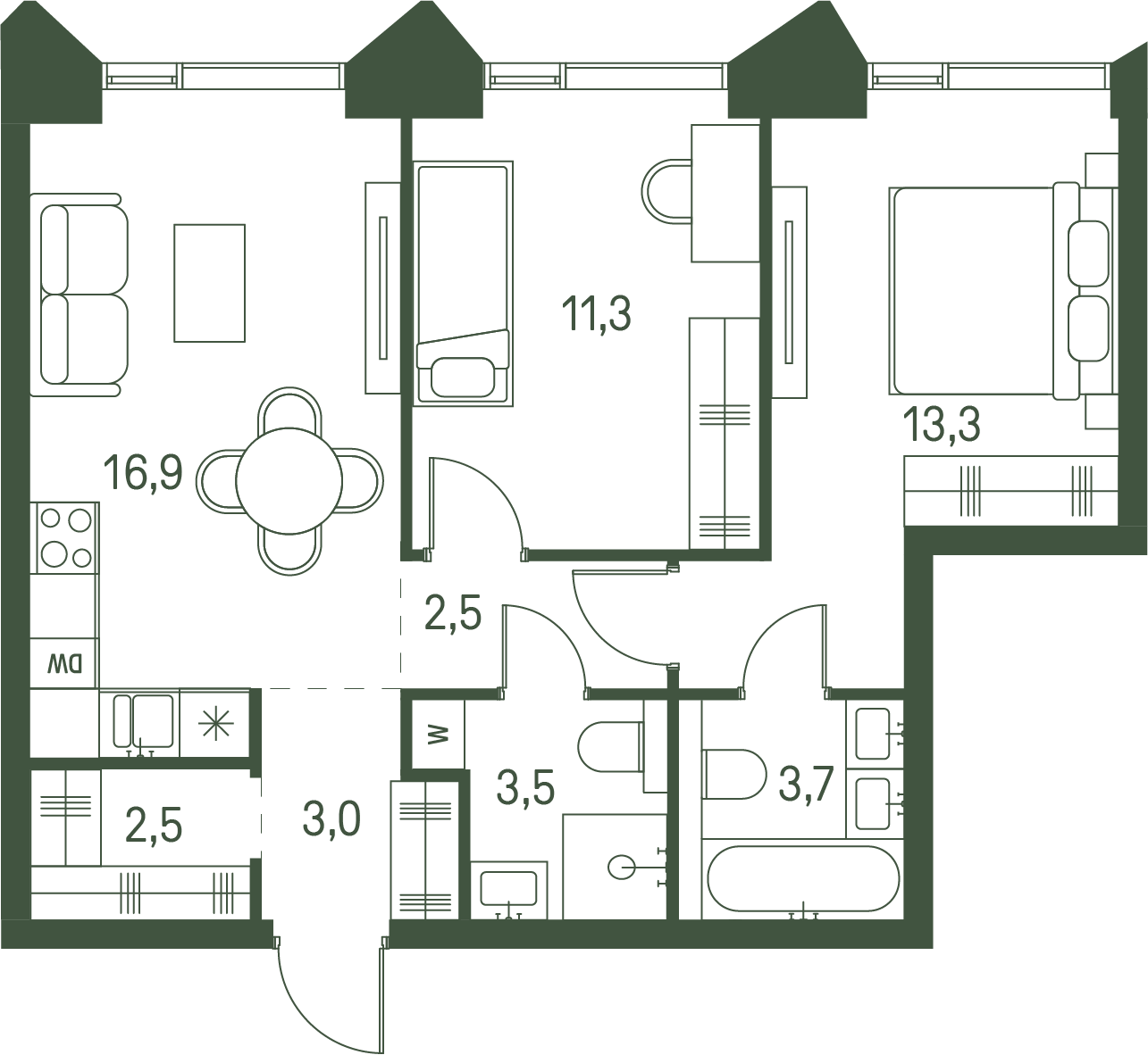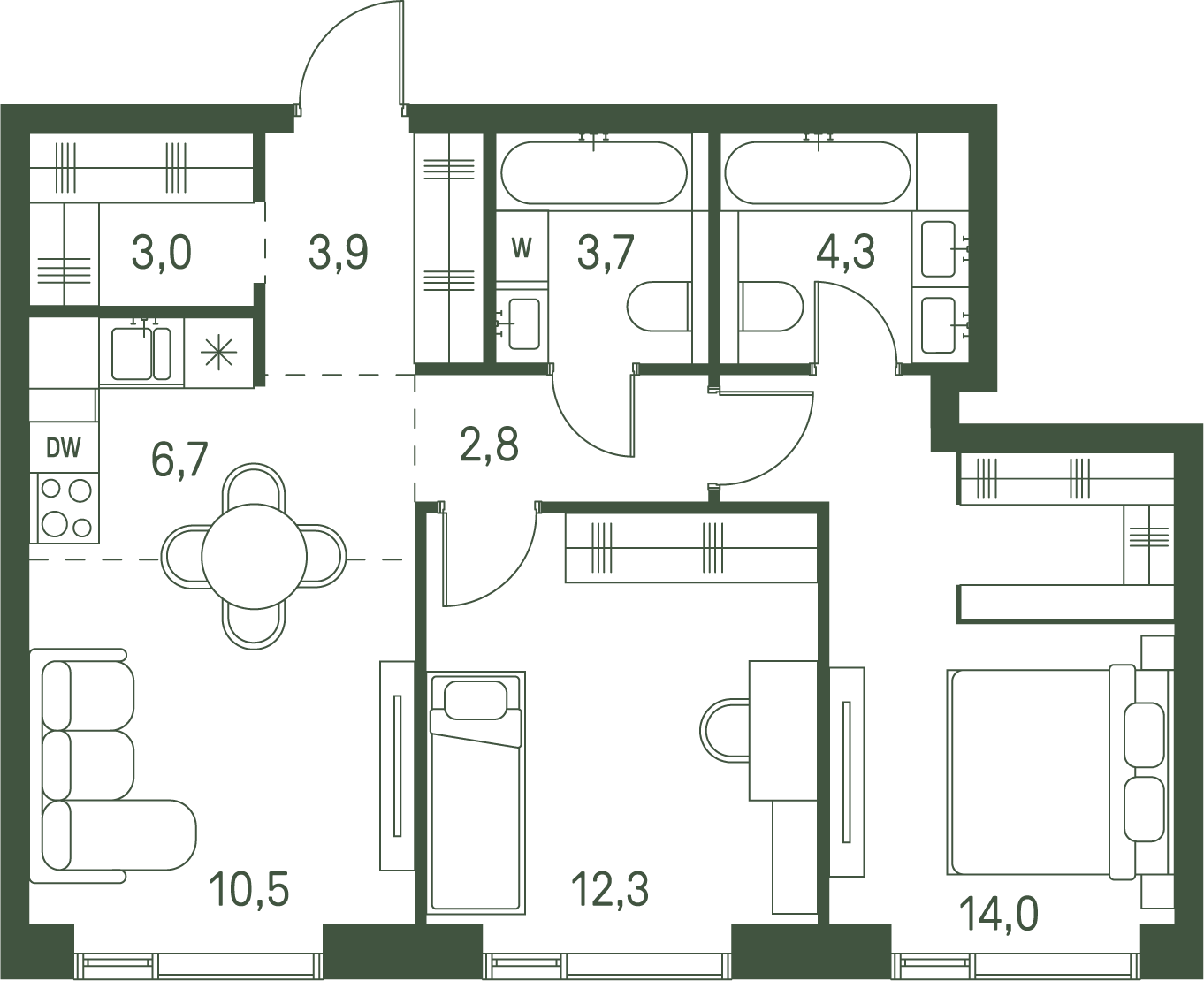 2-комнатная (56.7м2)