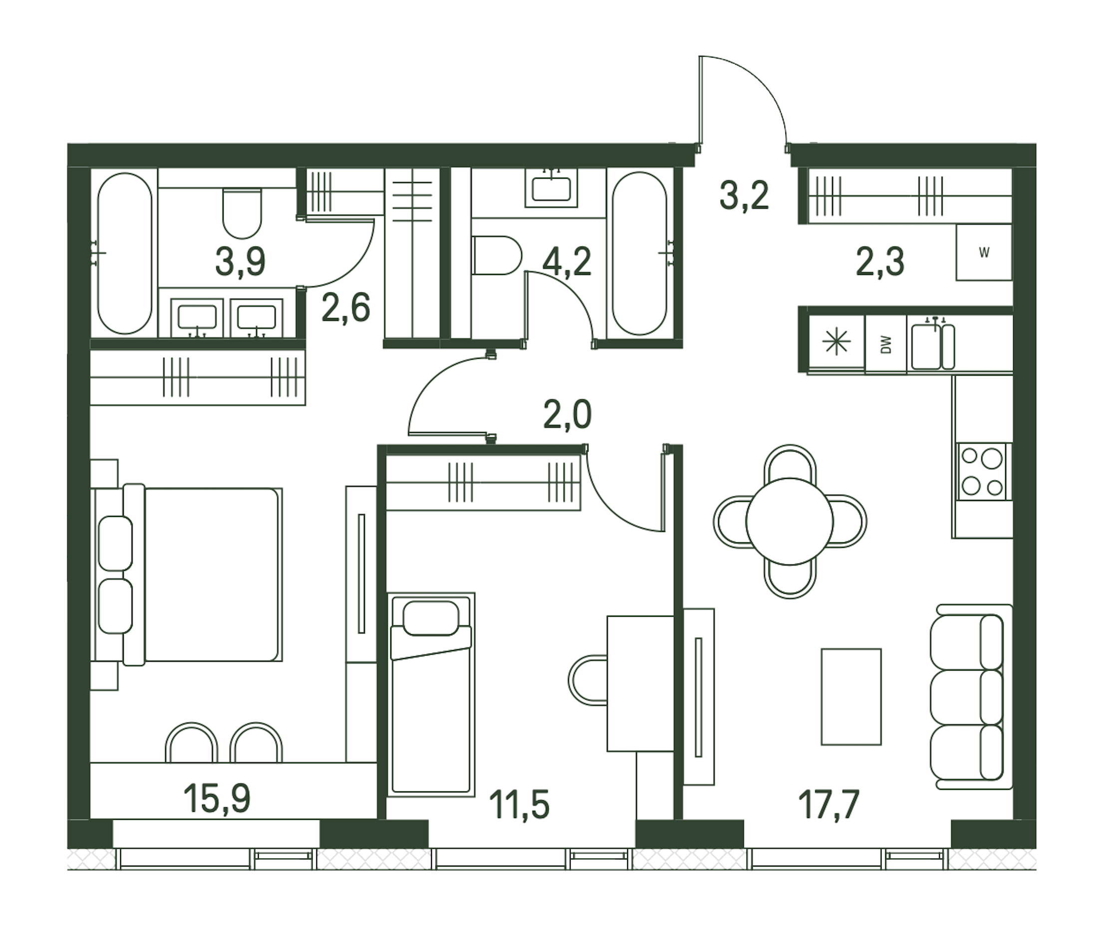 2-комнатная (61.7м2)