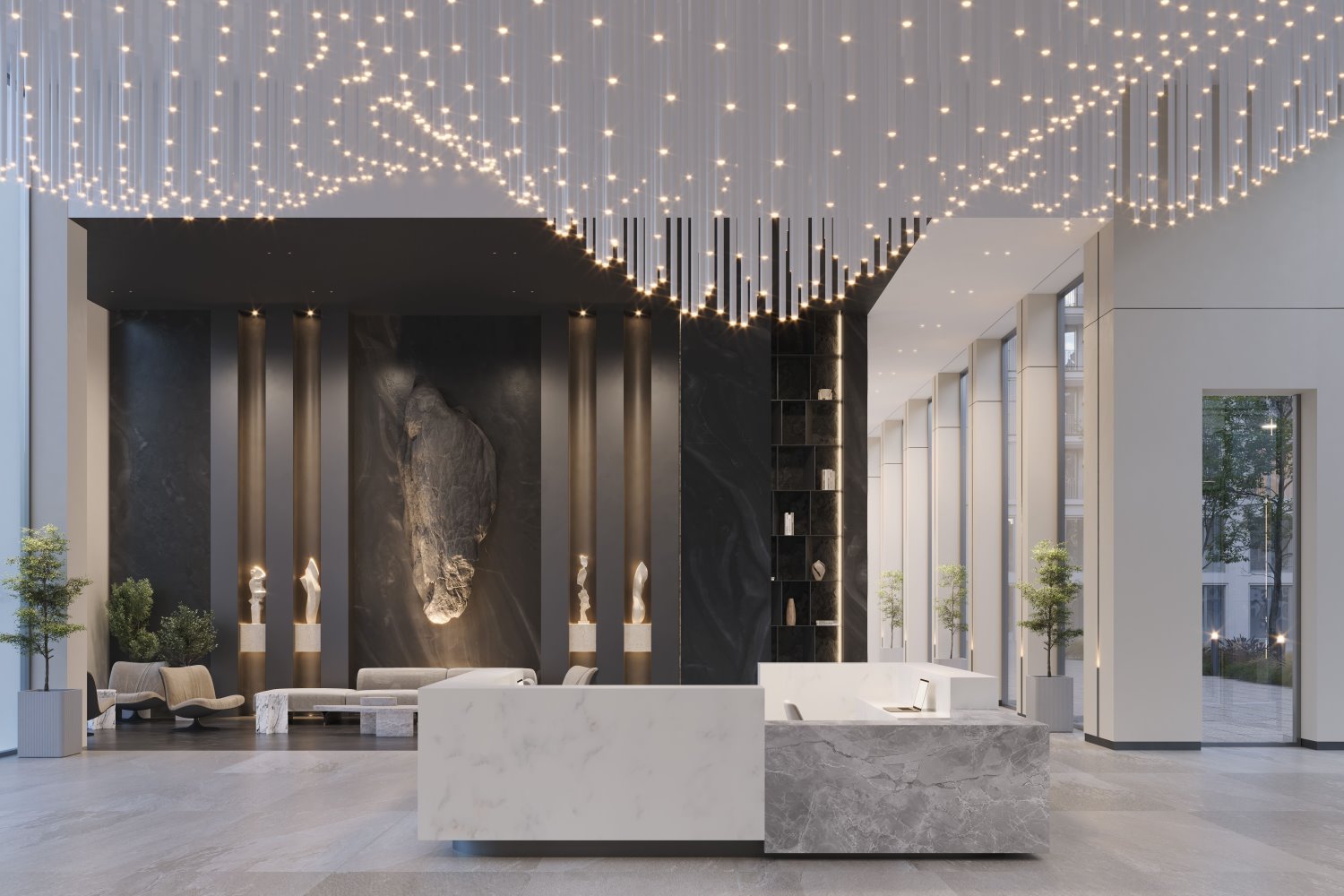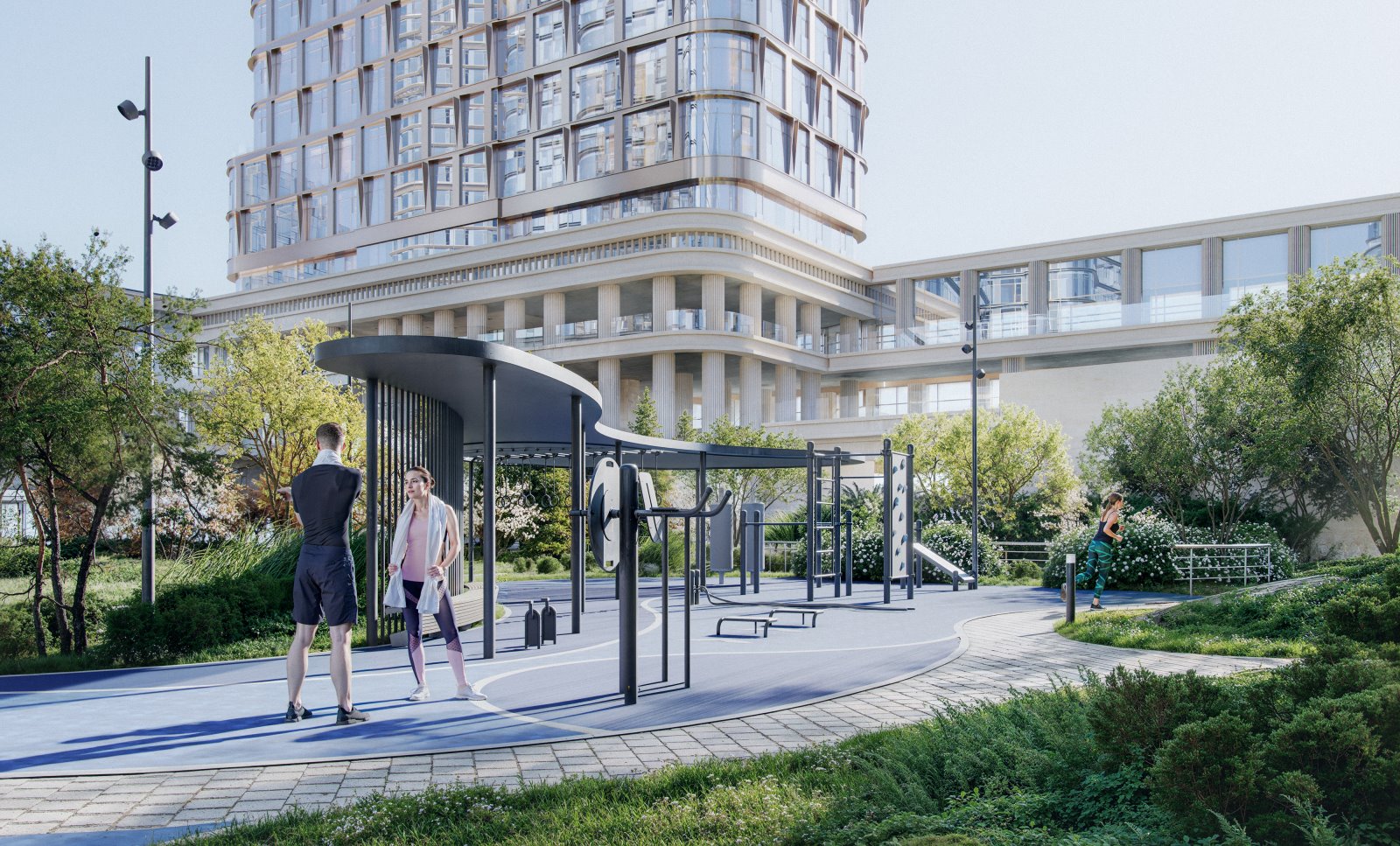 Опции, которые предлагает застройщик для проекта Начало: детские и спортивные площадки, коммерческие помещения на первом этаже, фитнес-центр с бассейном, кинотеатр, детский сад, школу,