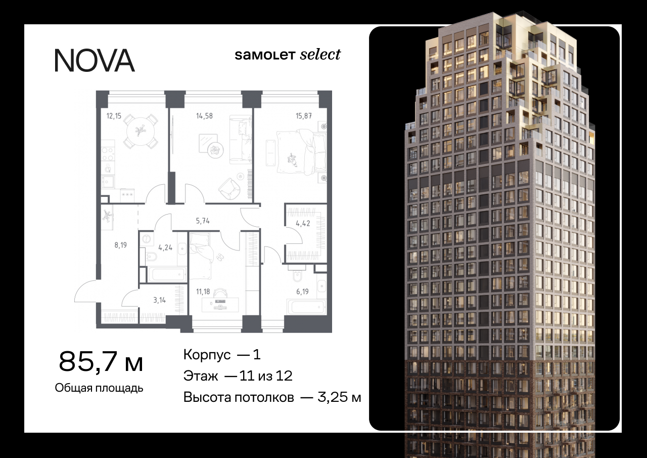 Трехкомнатные квартиры в ЖК NOVA (Нова)