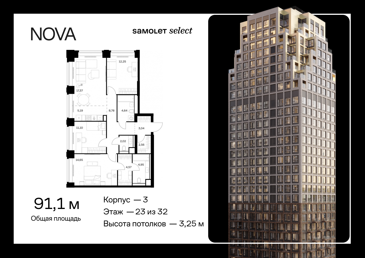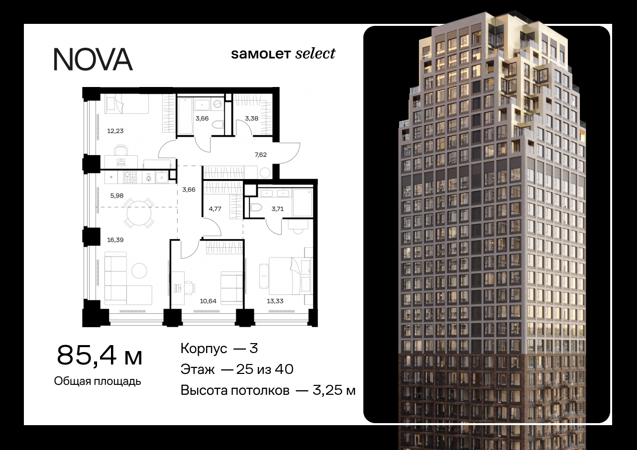 Евро трехкомнатные квартиры в ЖК NOVA (Нова)