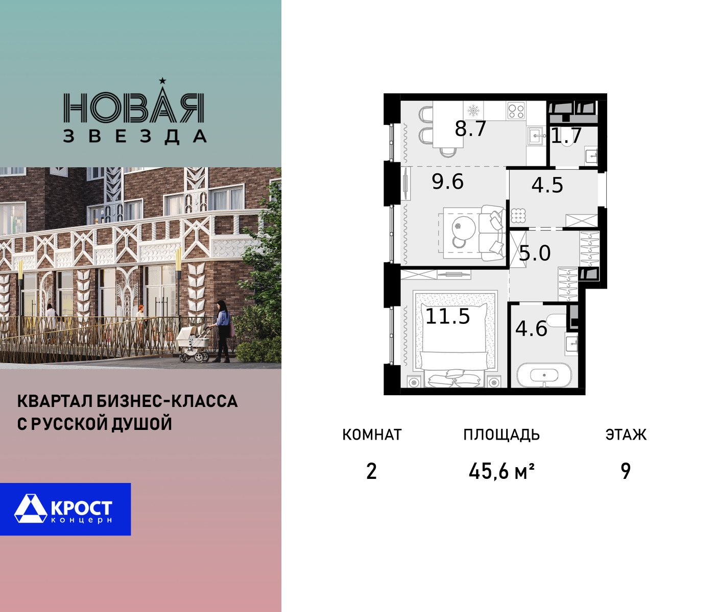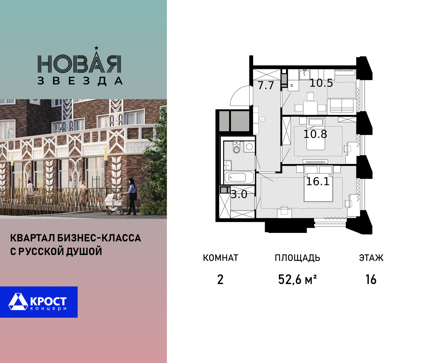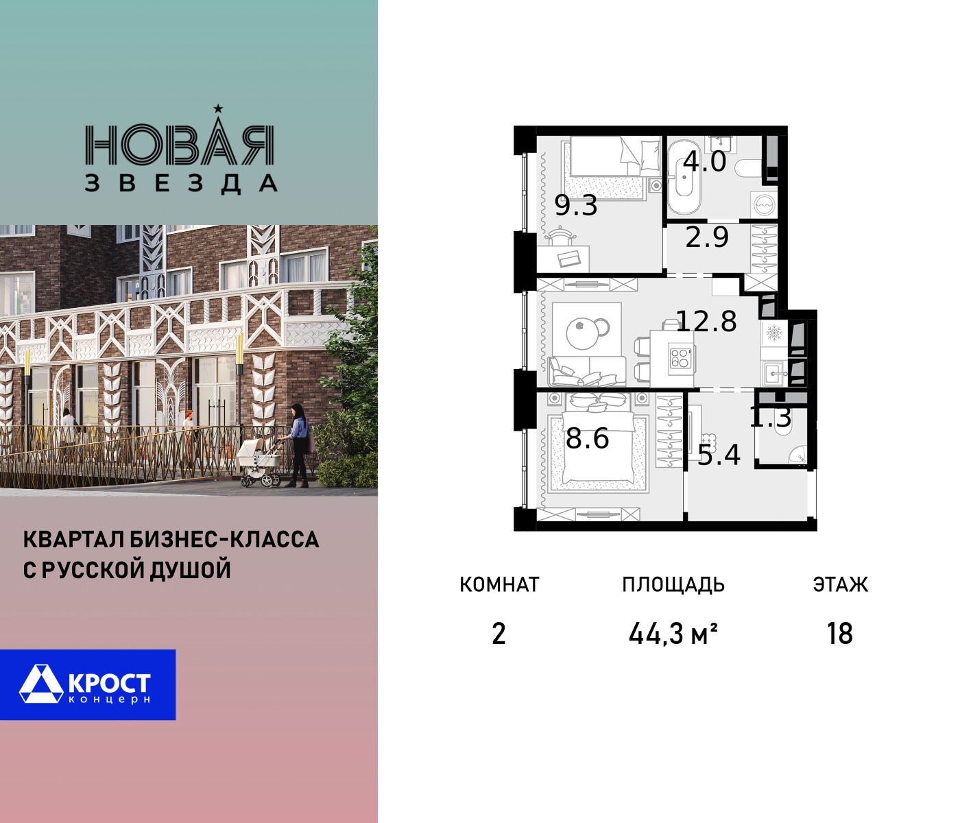 Двухкомнатные квартиры в ЖК Новая Звезда КРОСТ