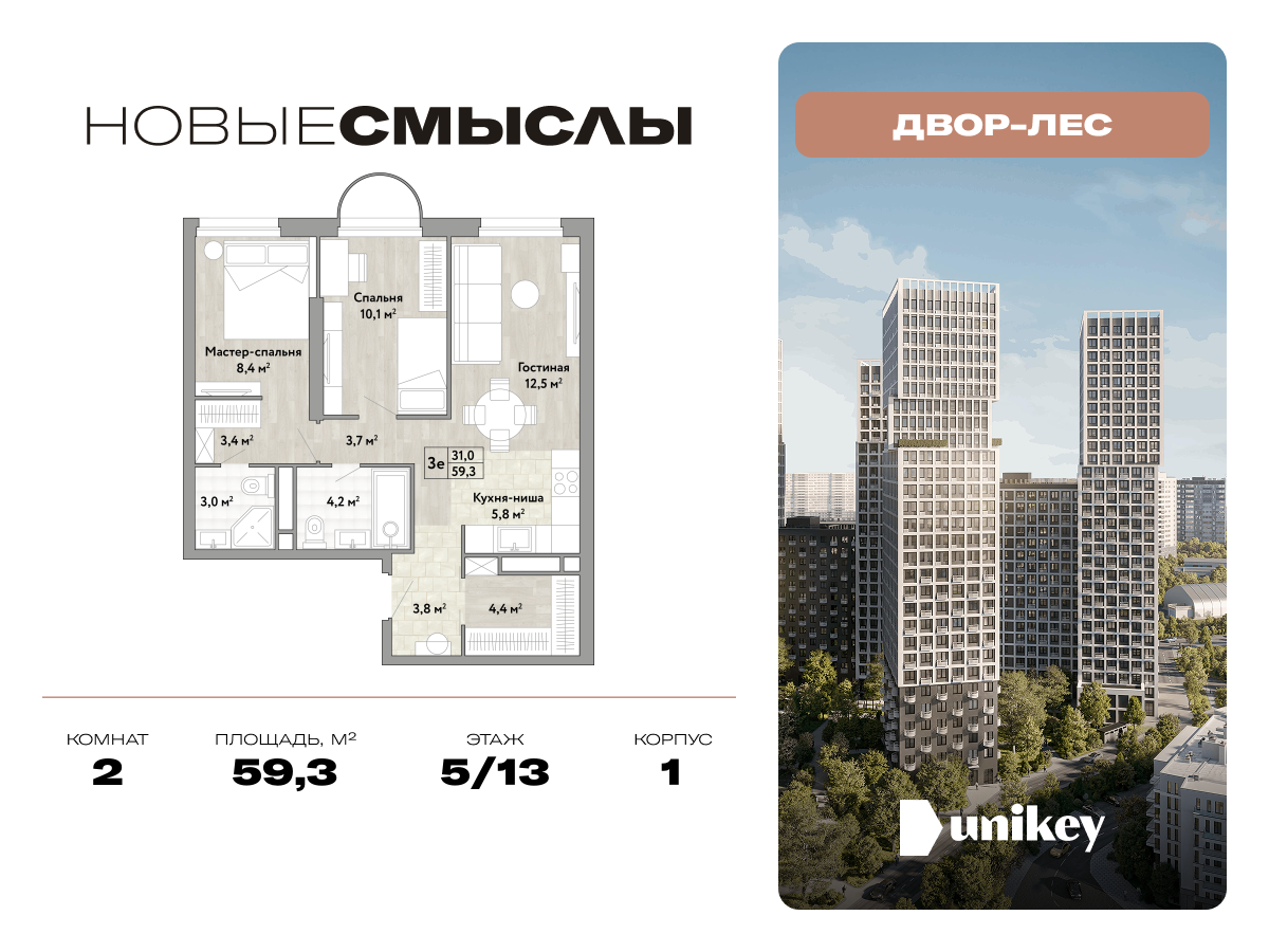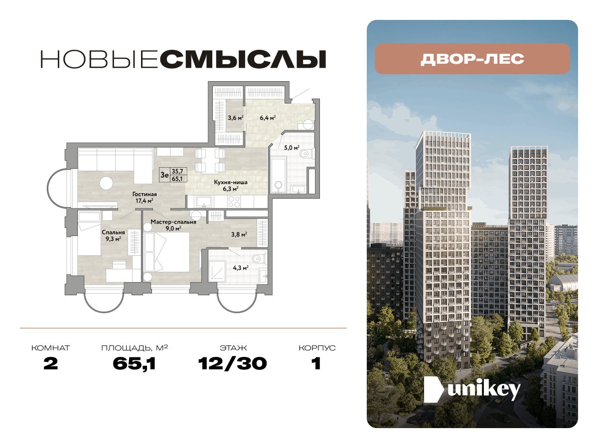 Евро двухкомнатные квартиры в ЖК Новые Смыслы