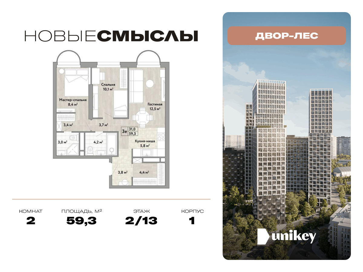 Евро двухкомнатные квартиры в ЖК Новые Смыслы
