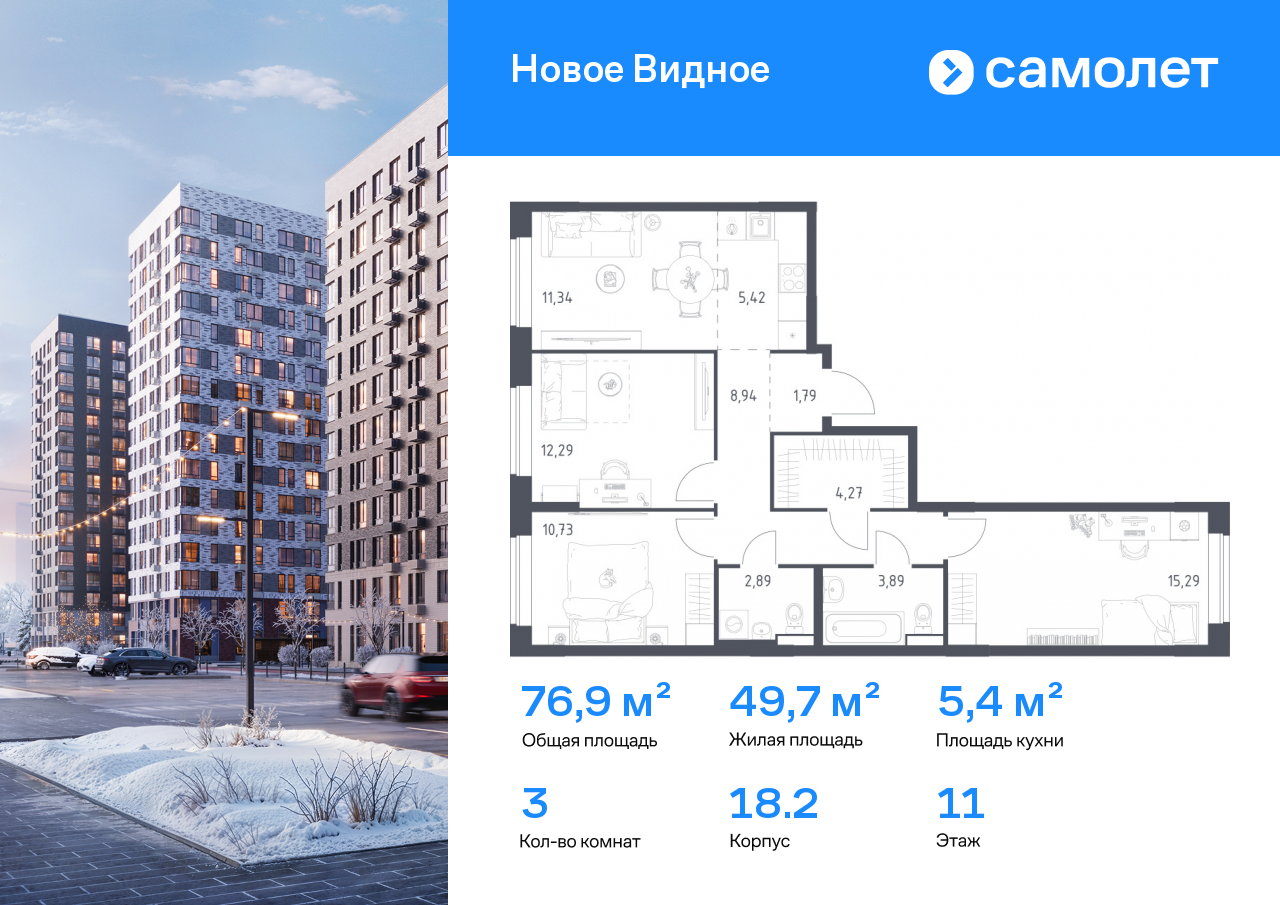 Трехкомнатные квартиры в ЖК «Новое Видное»