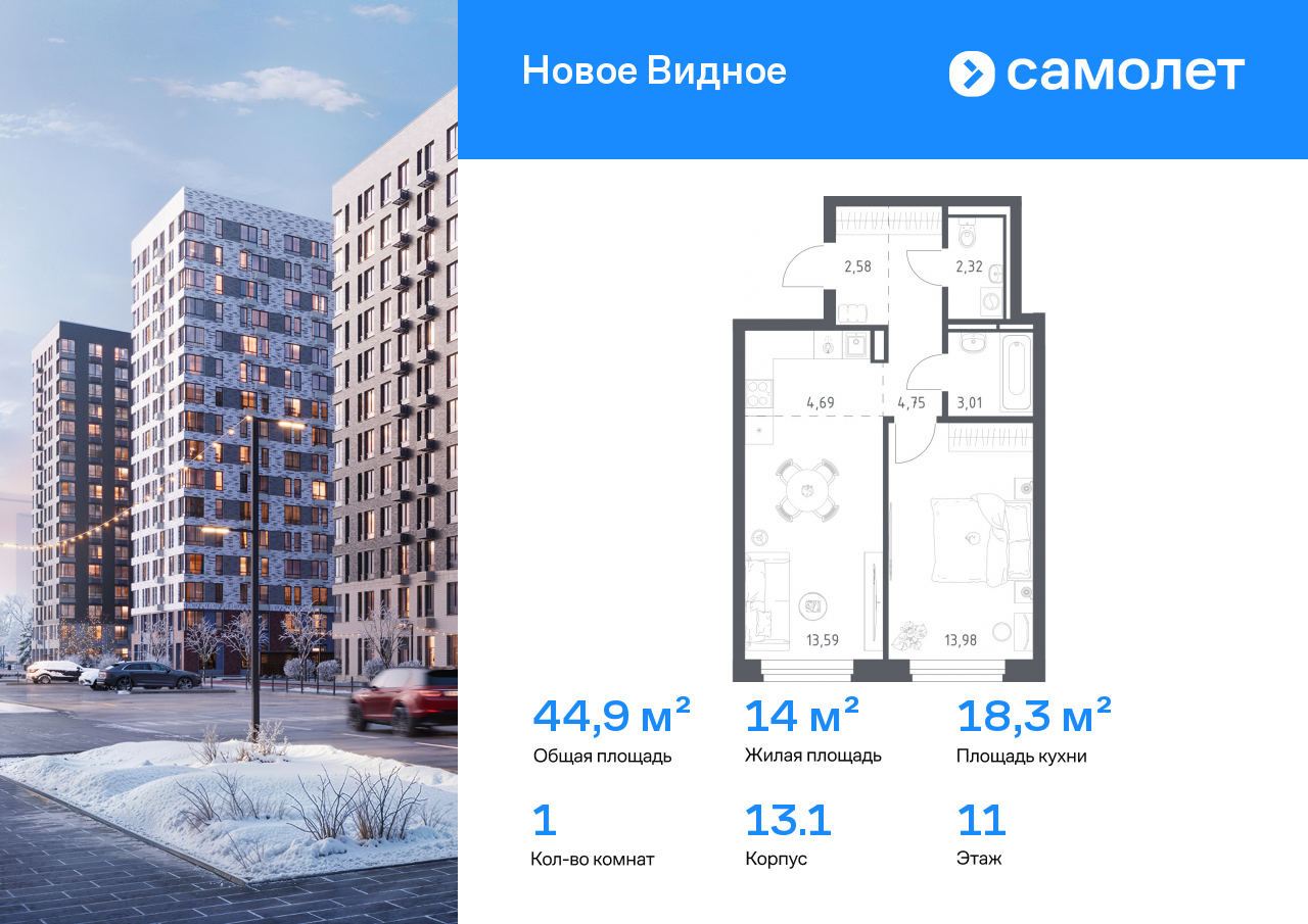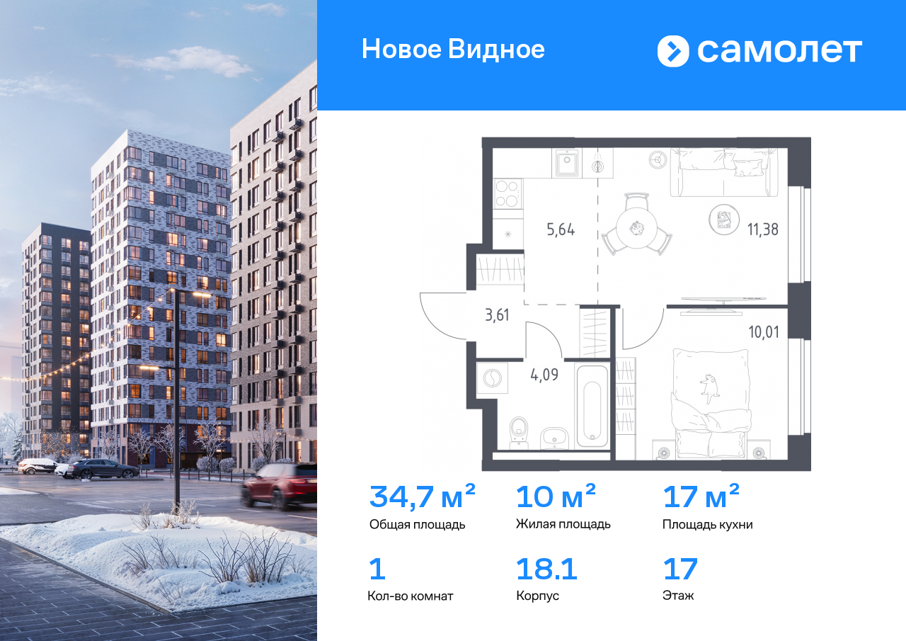 Евро однокомнатные квартиры в ЖК «Новое Видное»