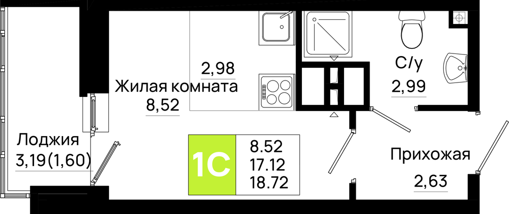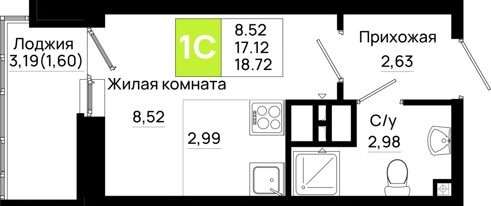 Студия (18.72м2)