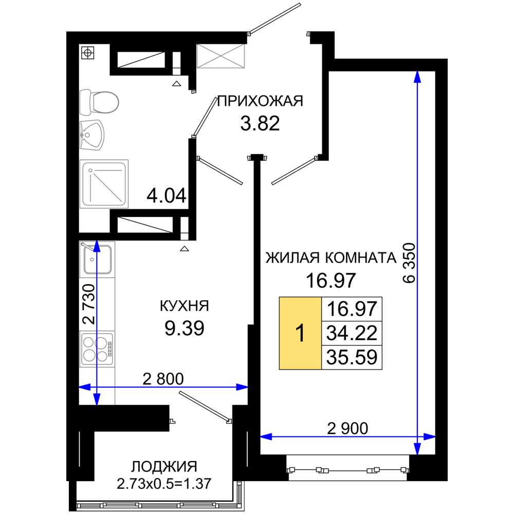 1-комнатная (35.59м2)
